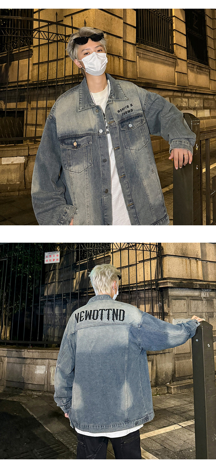데님 자켓 남성용 가을 빈티지 미국 옷깃 데님 재킷 잘 생긴 편지 가죽 압력 데님 재킷
