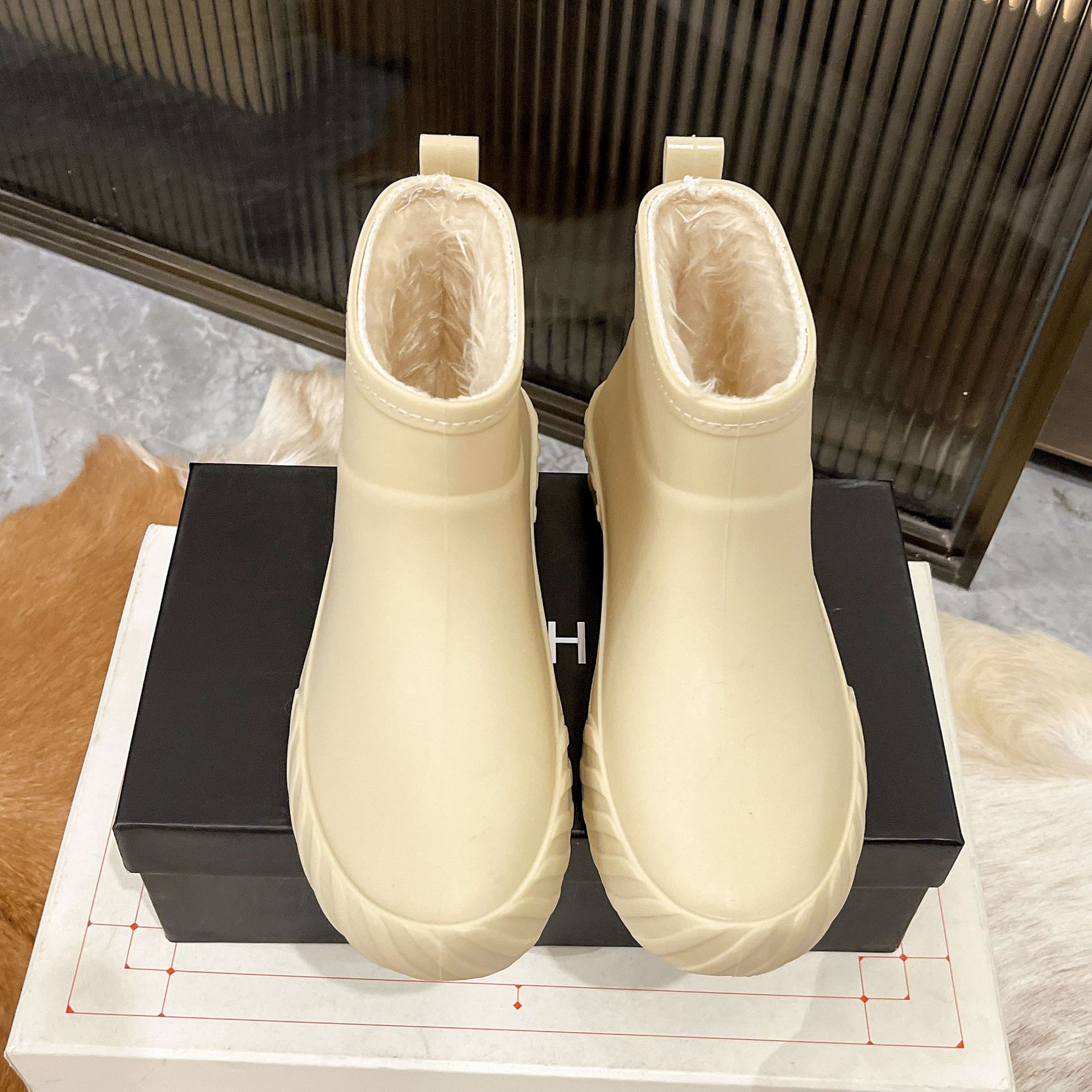 일본과 한국의 새로운 내한성 따뜻한 기모 장화 여성 복장 비 장화 가을 및 겨울 워터 부츠 두꺼운 미끄럼 방지 방수 신발스토어 가기