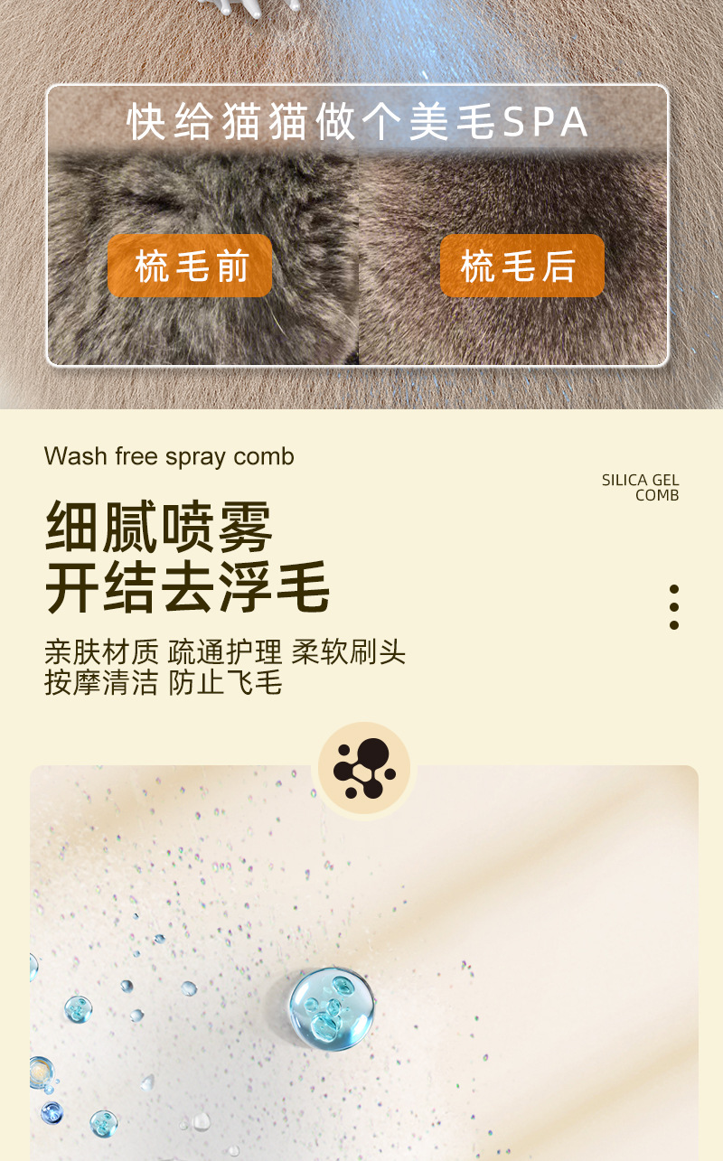 애완 동물 고양이와 개 헤어 케어 스프레이 빗 마사지 원버튼 스프레이로 헤어 브러시 머리 제거 청소 유물 비행 방지 머리
