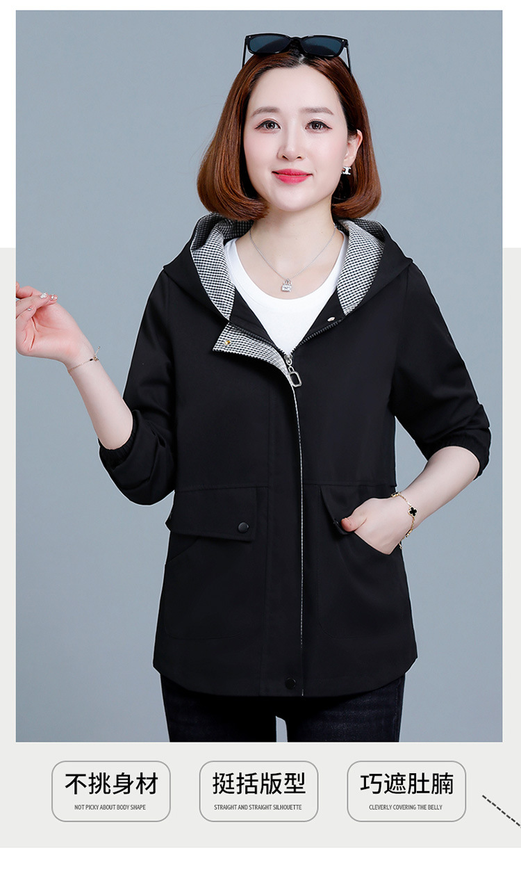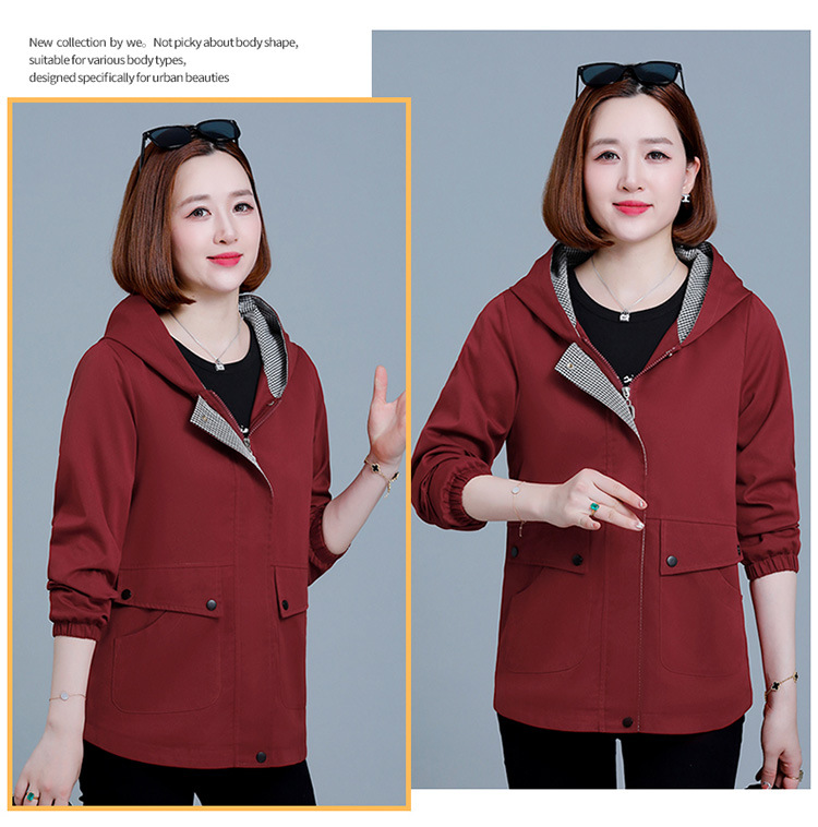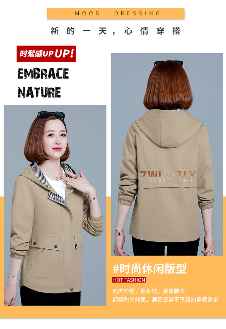 여성을위한 세련된 어머니의 후드 짧은 재킷 봄, 가을 2024 새로운 느슨한 캐주얼 서양식 연령 감소 재킷 탑스토어 가기