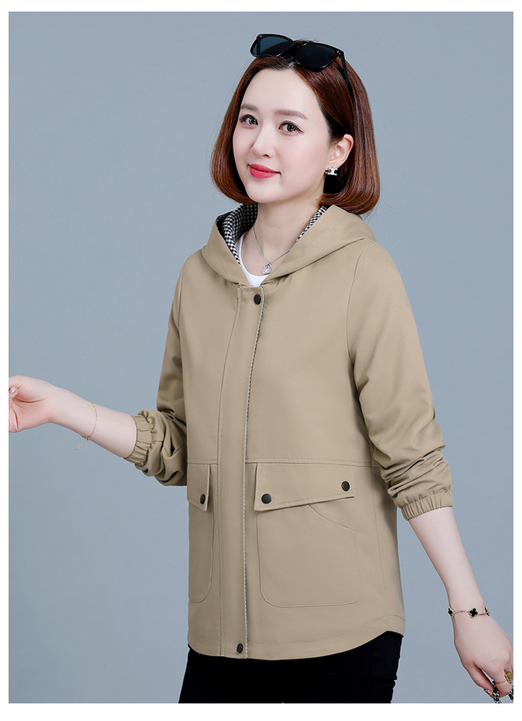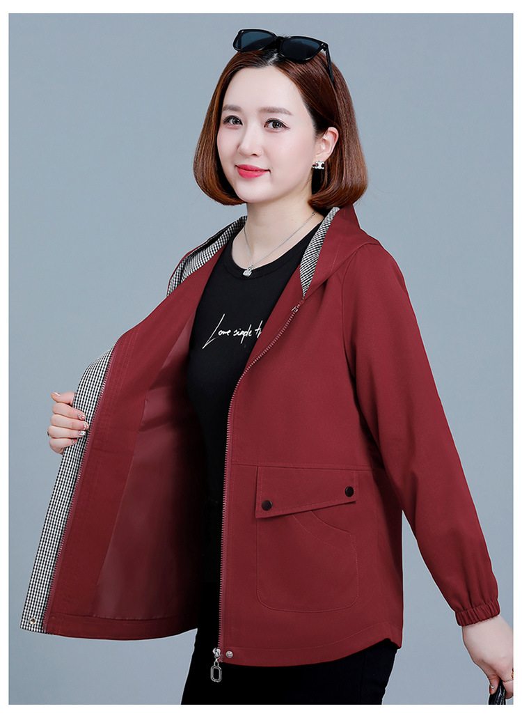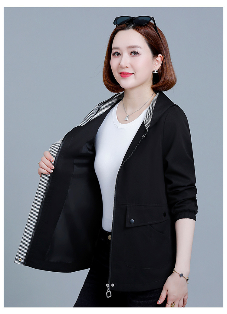여성을위한 세련된 어머니의 후드 짧은 재킷 봄, 가을 2024 새로운 느슨한 캐주얼 서양식 연령 감소 재킷 탑