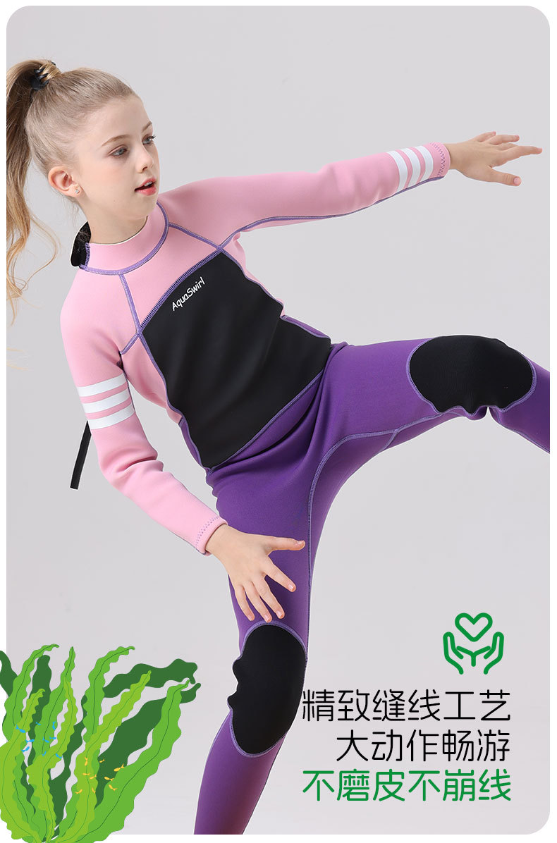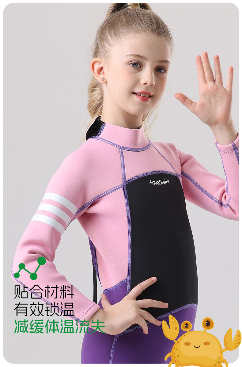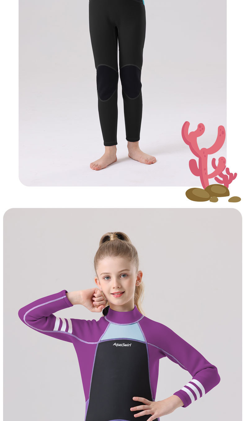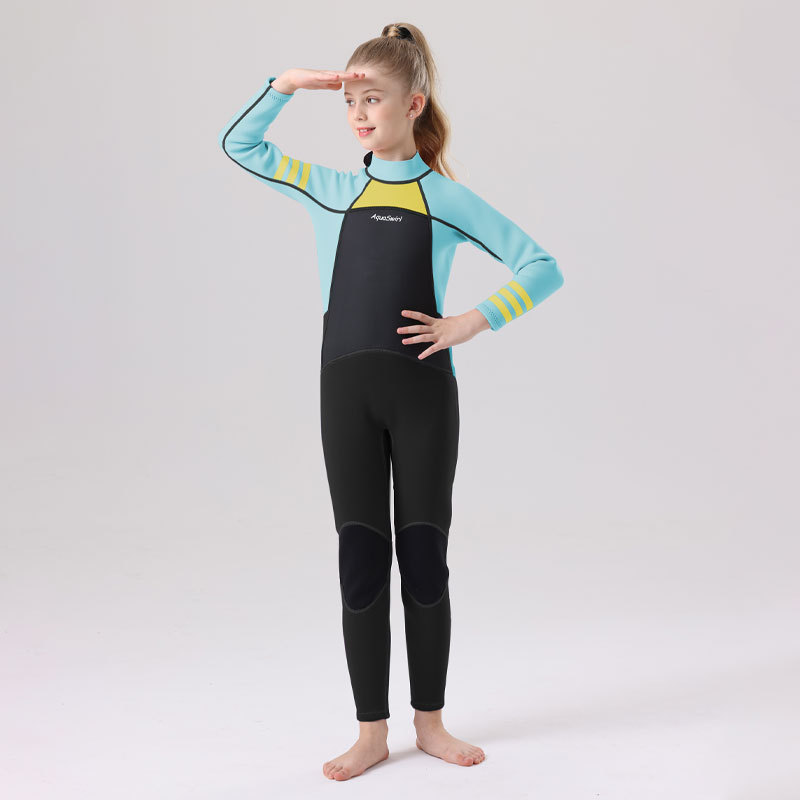 국경 간 새로운 어린이 다이빙 세트 야외 자외선 차단제 소녀의 한 몸 수영 세트 긴 소매 원바디 세트 따뜻한 감기 보호