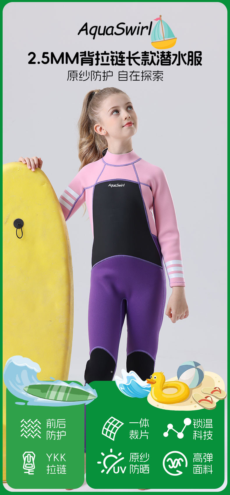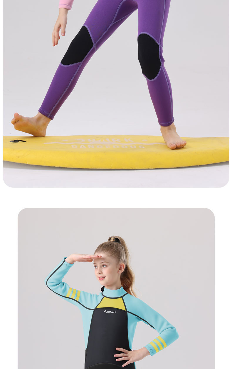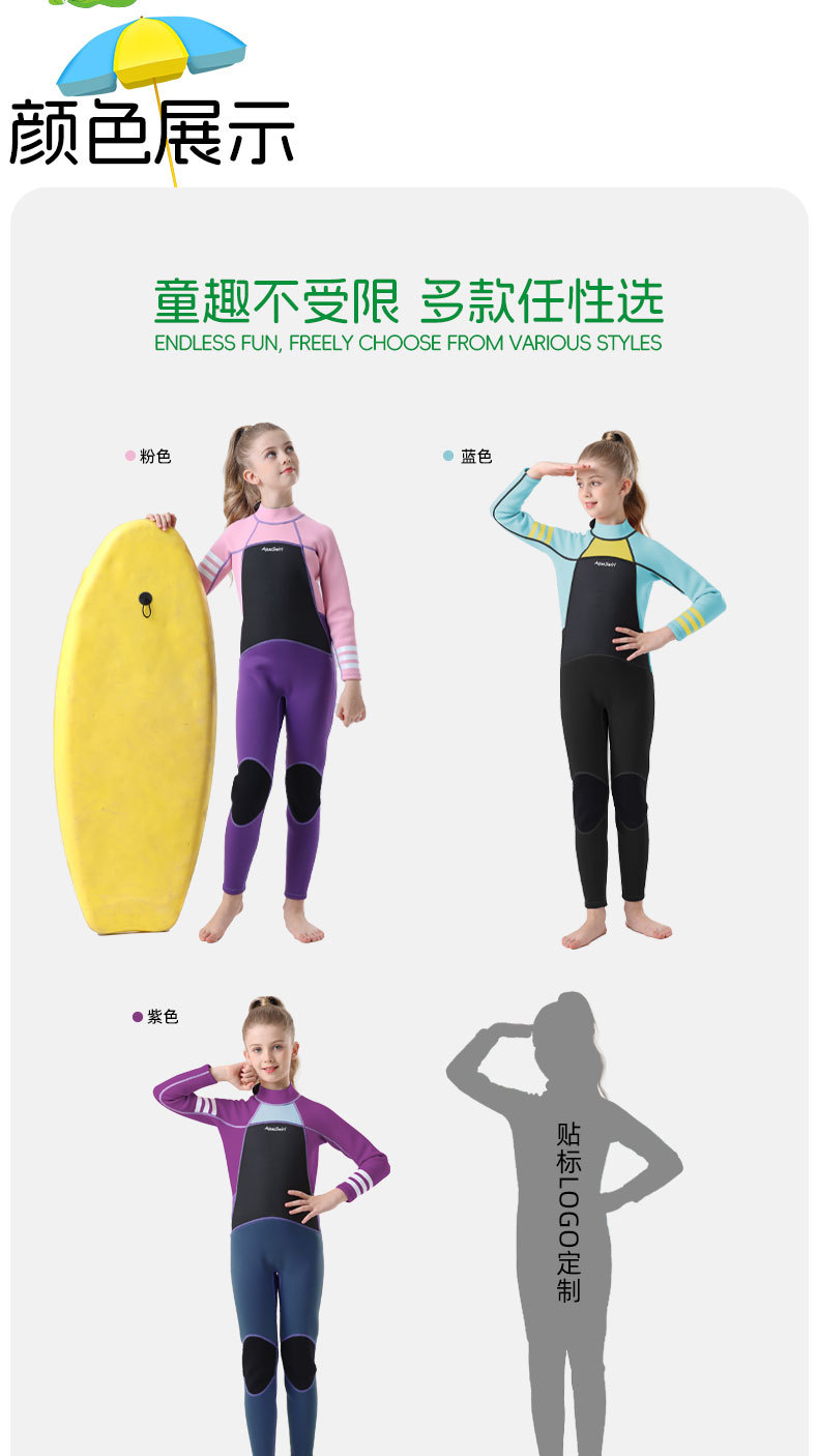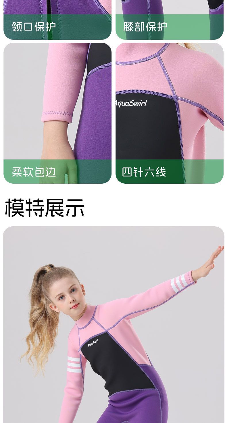 국경 간 새로운 어린이 다이빙 세트 야외 자외선 차단제 소녀의 한 몸 수영 세트 긴 소매 원바디 세트 따뜻한 감기 보호
