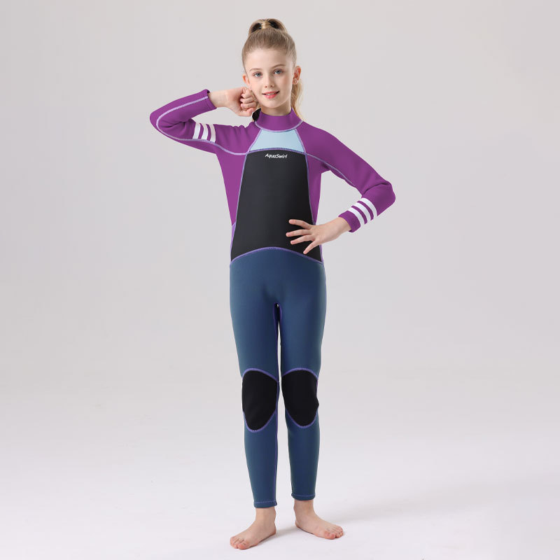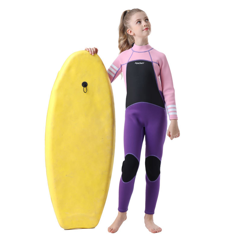 국경 간 새로운 어린이 다이빙 세트 야외 자외선 차단제 소녀의 한 몸 수영 세트 긴 소매 원바디 세트 따뜻한 감기 보호스토어 가기