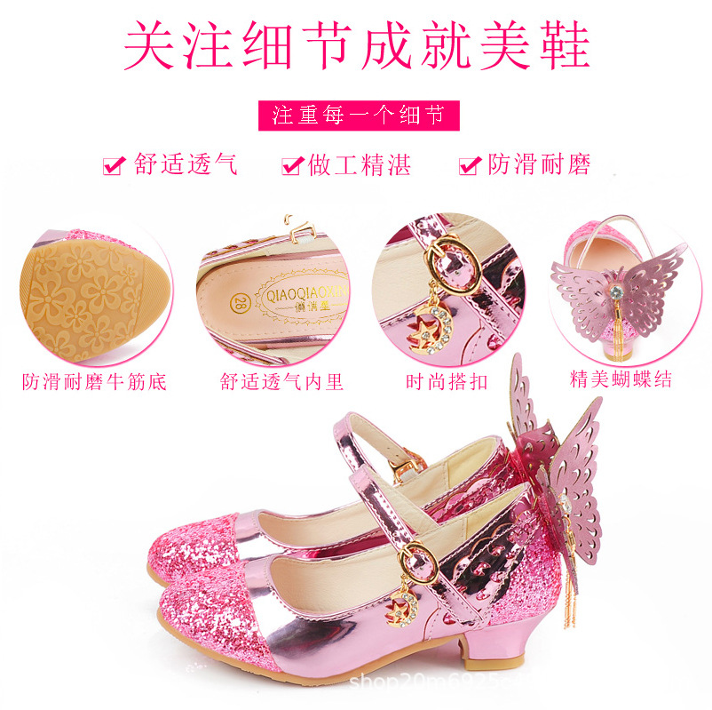 어린 소녀 공주 신발 세련된 새로운 온라인 빨간 신발 소녀 가죽 신발 2024 봄과 가을 어린이 크리스탈 하이힐 유행스토어 가기