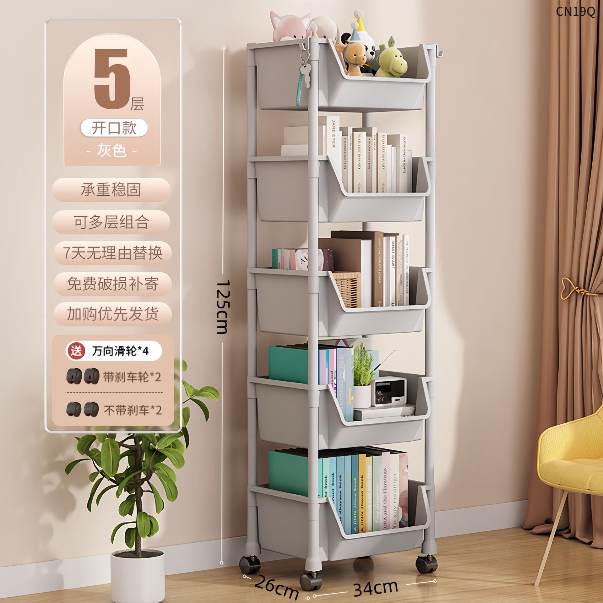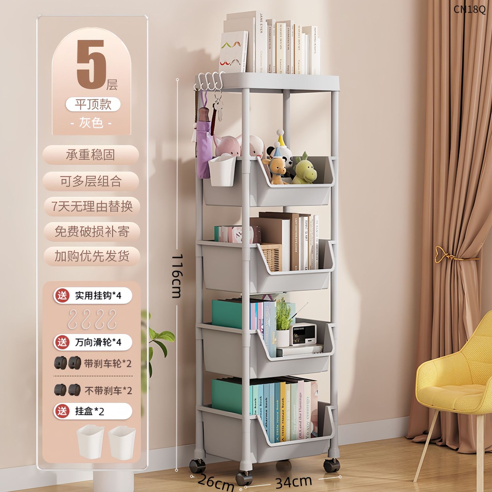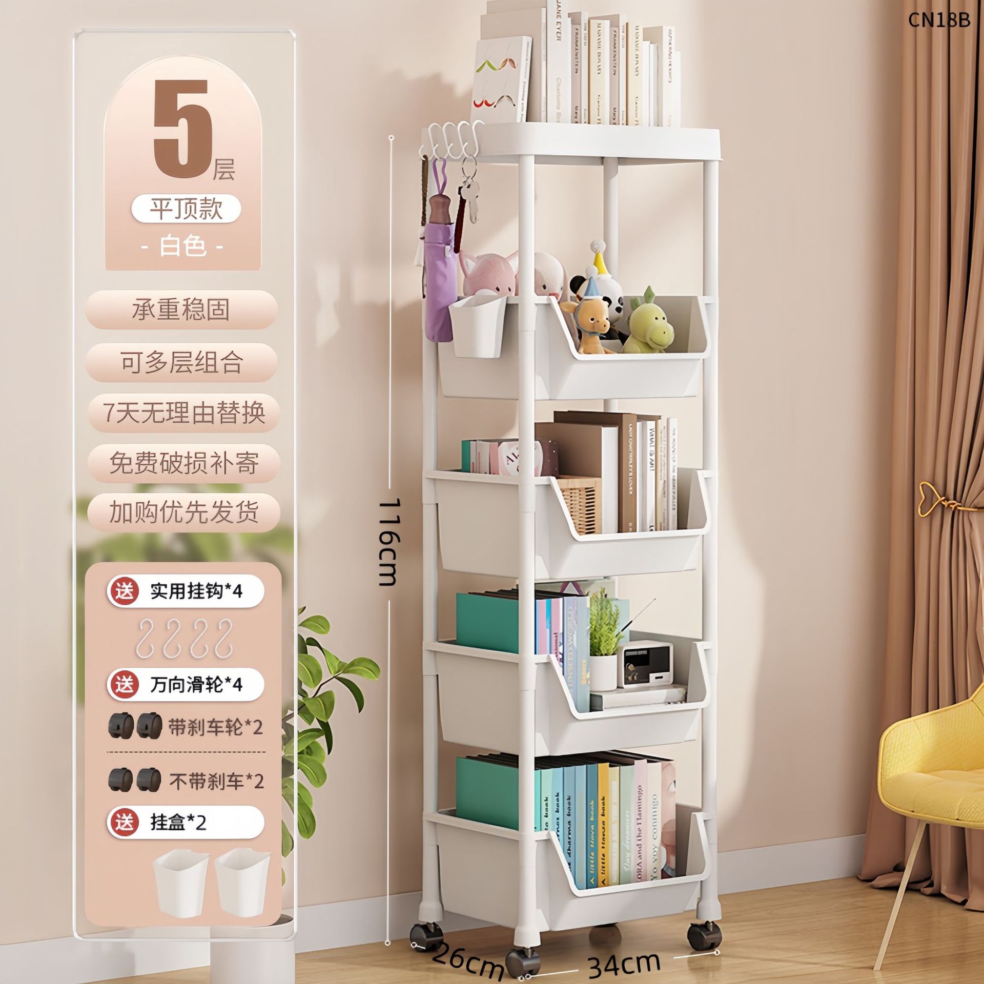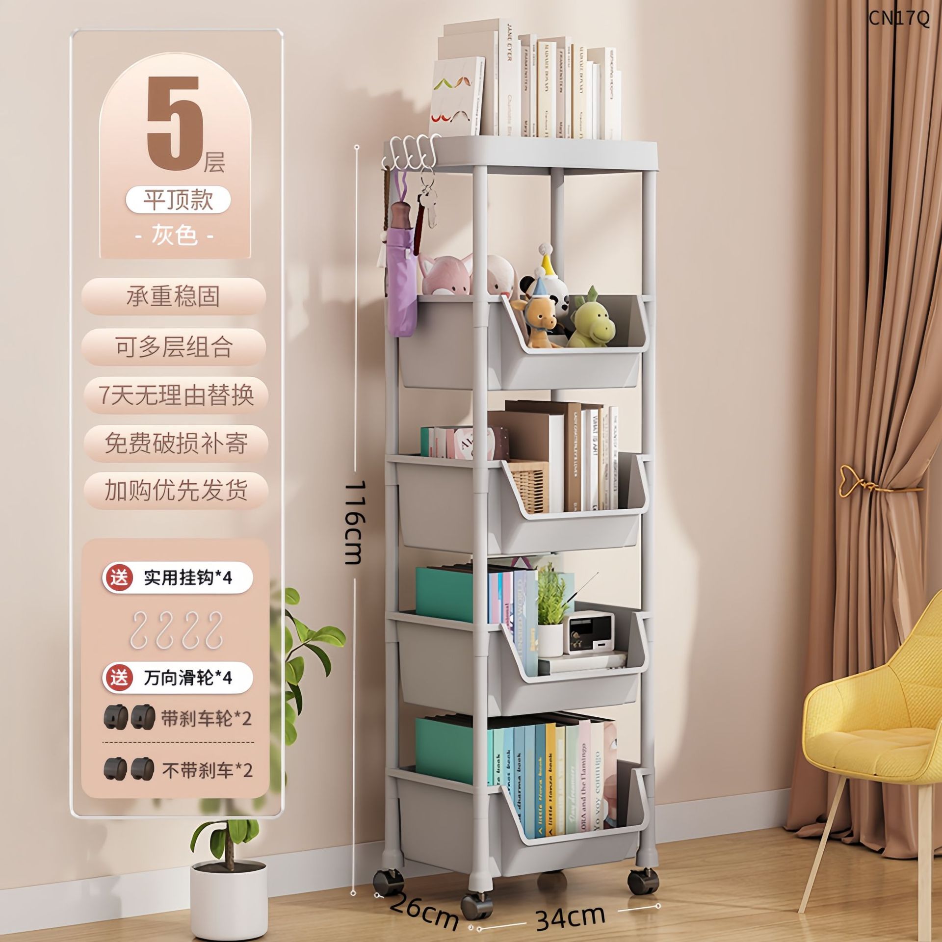 이동식 책장 보관 랙 어린이 장난감 보관 랙 다층 가정용 트롤리 바퀴 바닥 간단한 책장스토어 가기
