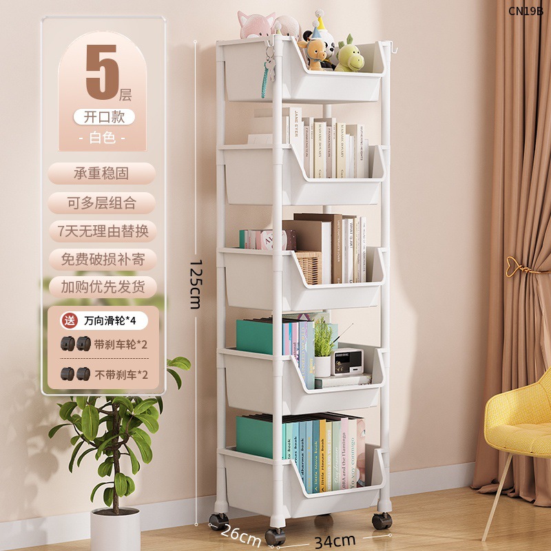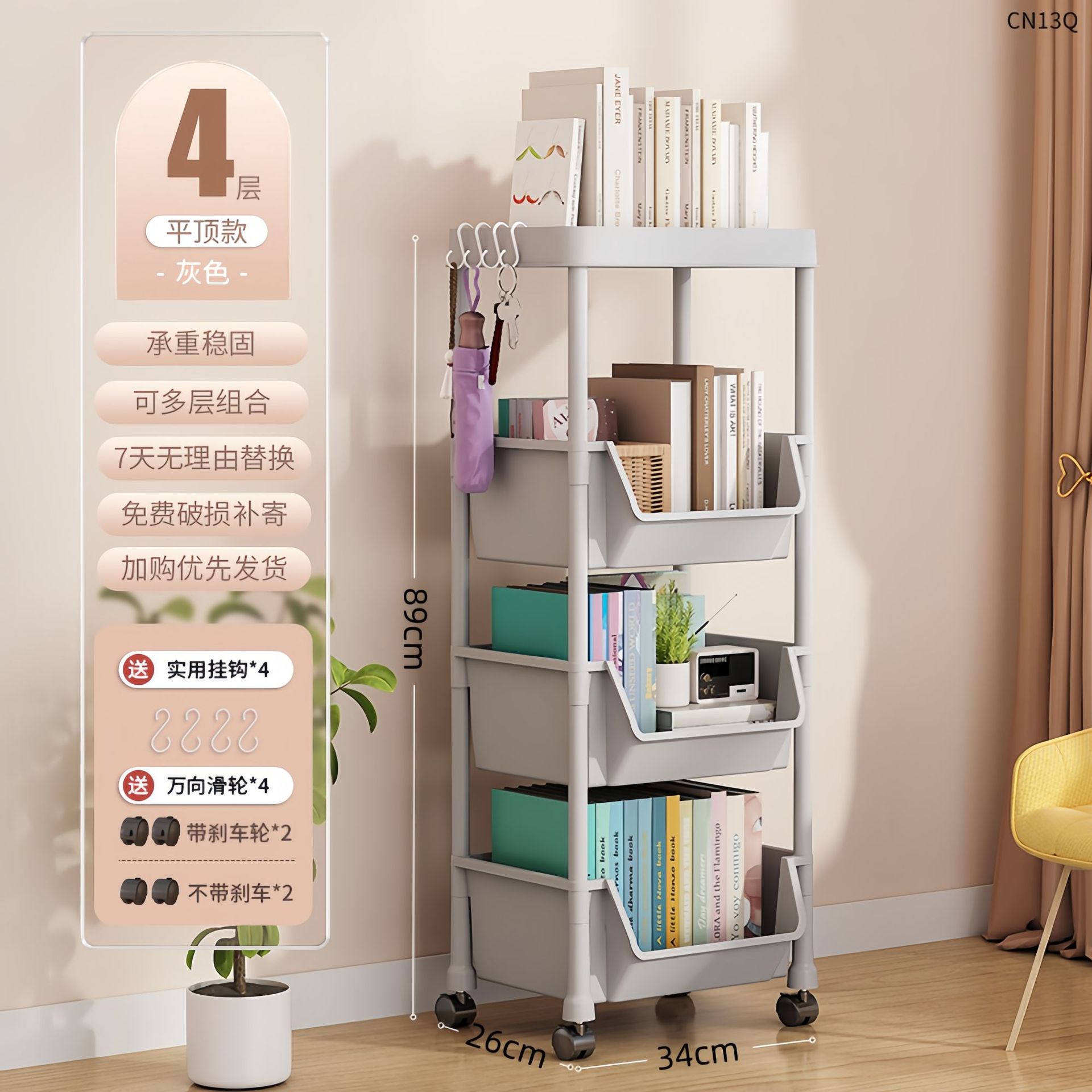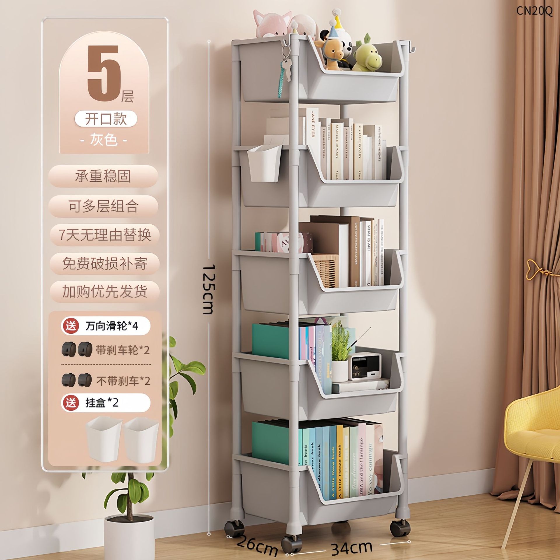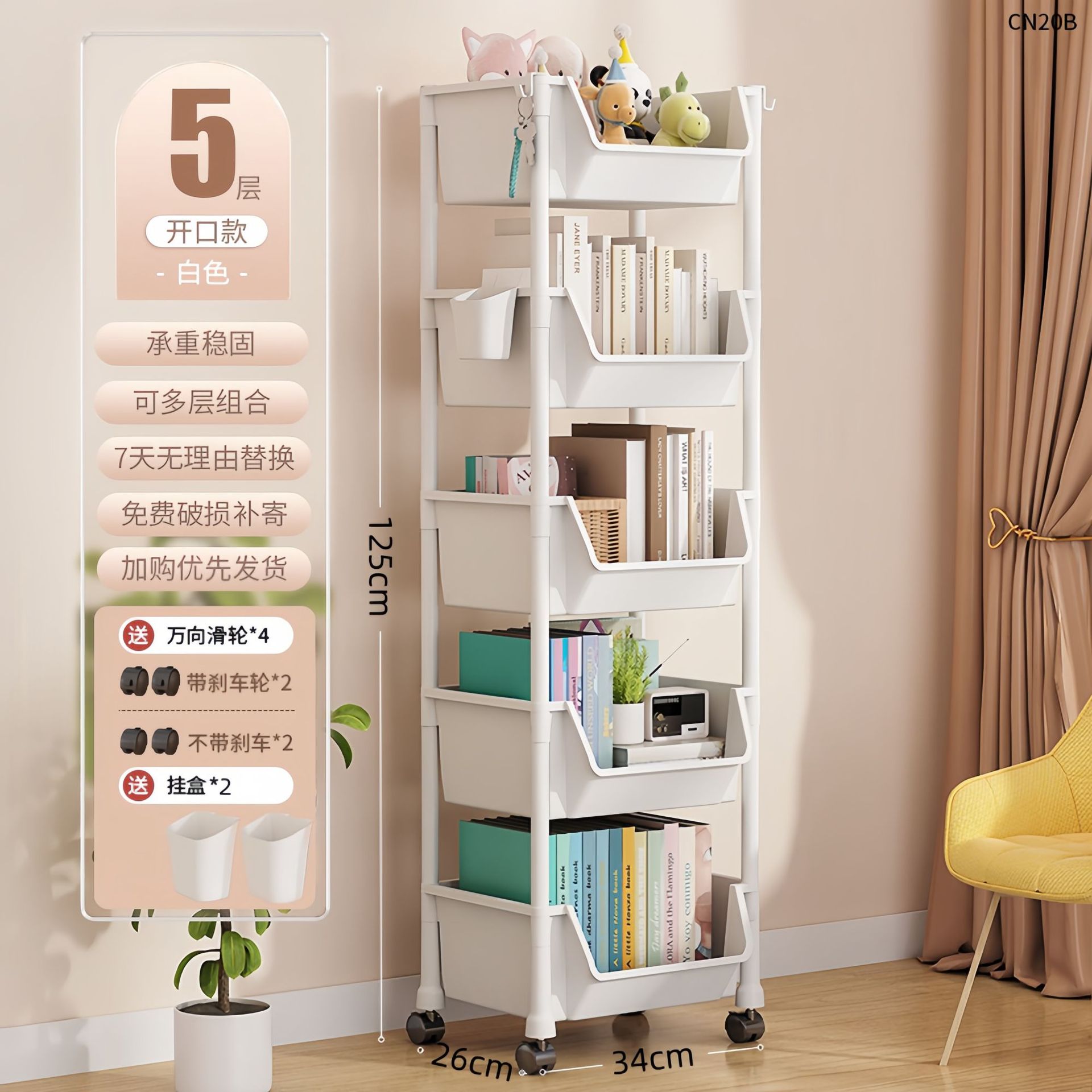 이동식 책장 보관 랙 어린이 장난감 보관 랙 다층 가정용 트롤리 바퀴 바닥 간단한 책장스토어 가기
