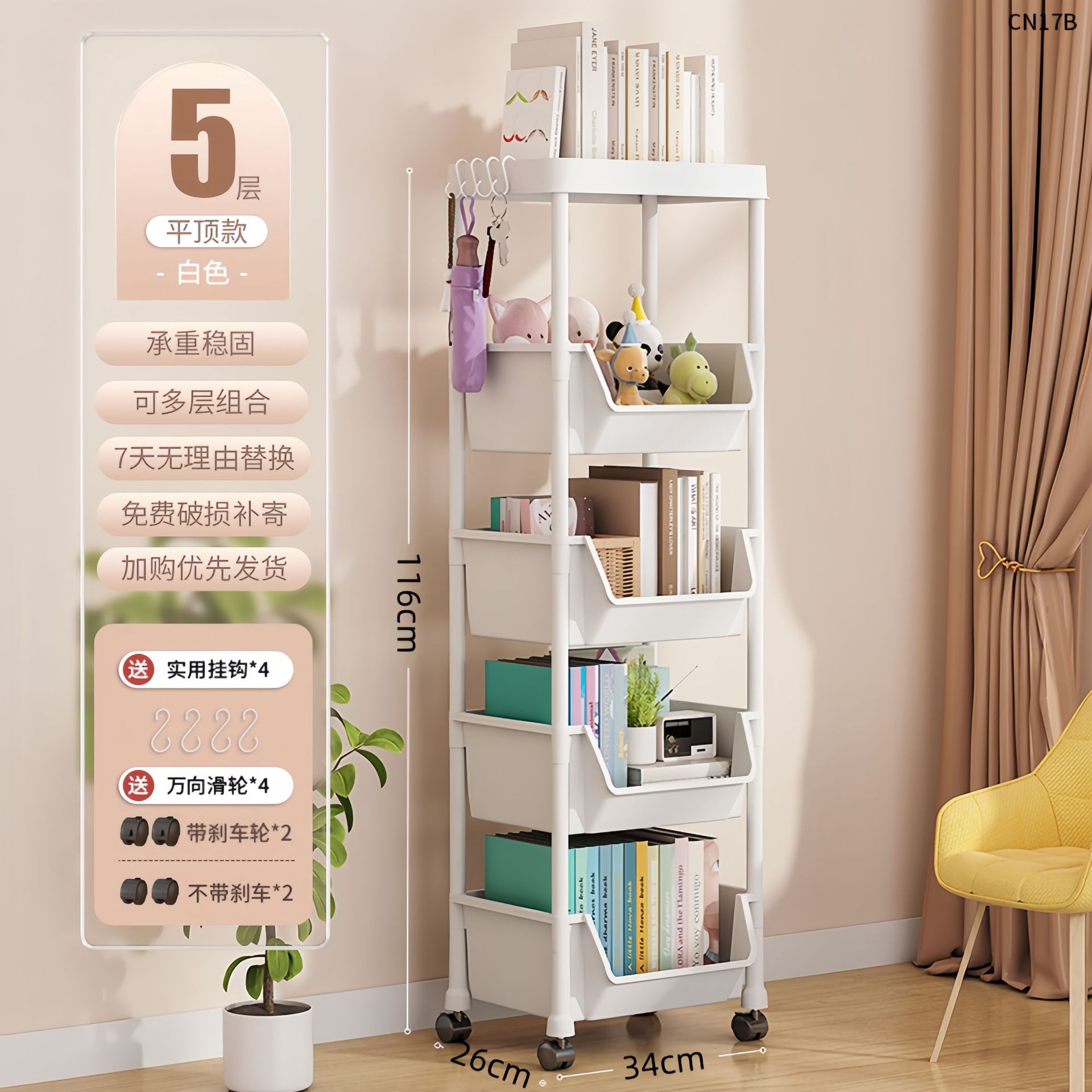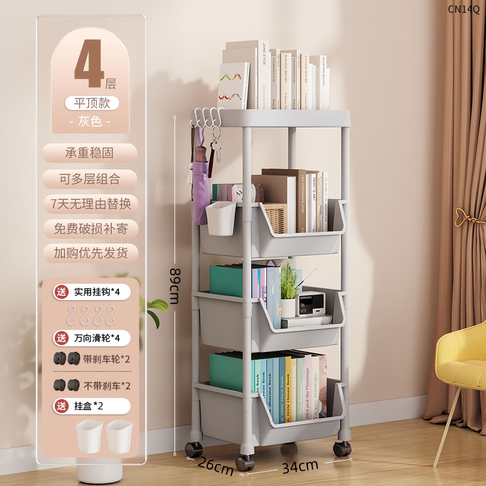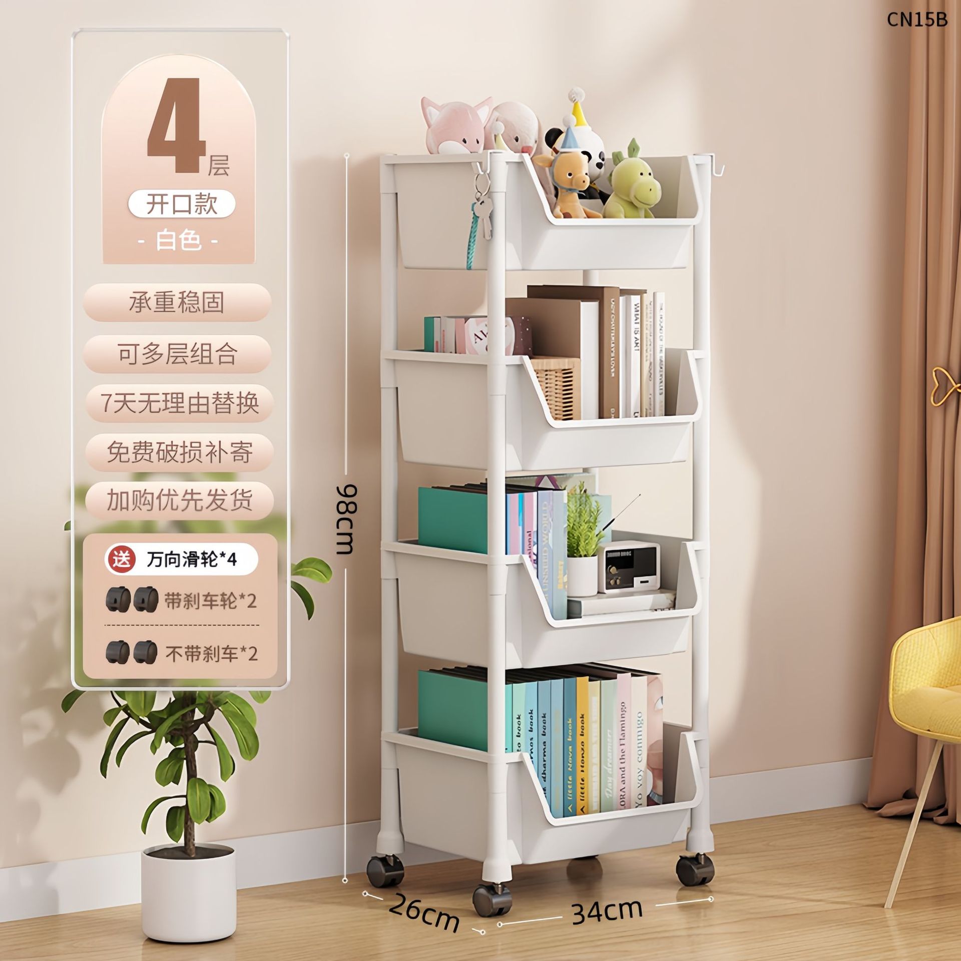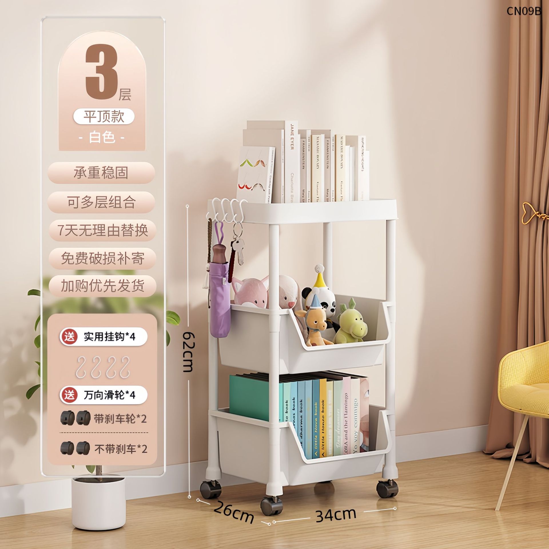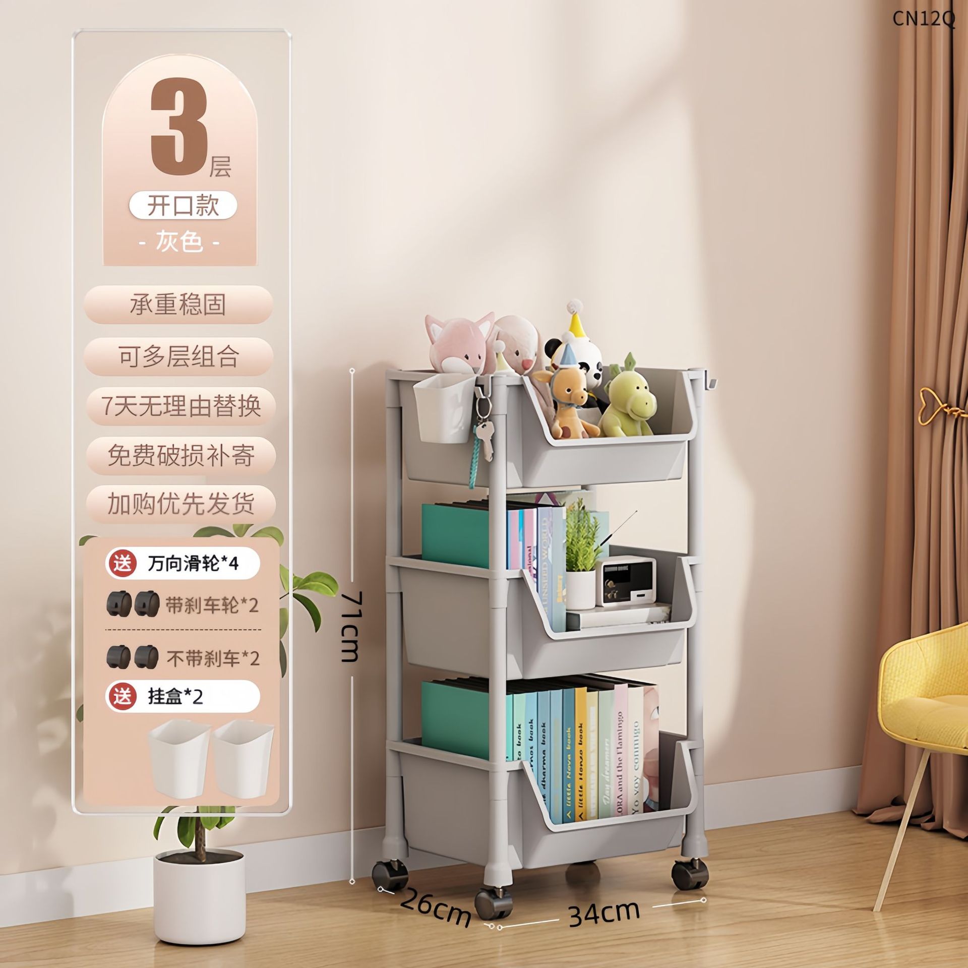 이동식 책장 보관 랙 어린이 장난감 보관 랙 다층 가정용 트롤리 바퀴 바닥 간단한 책장스토어 가기