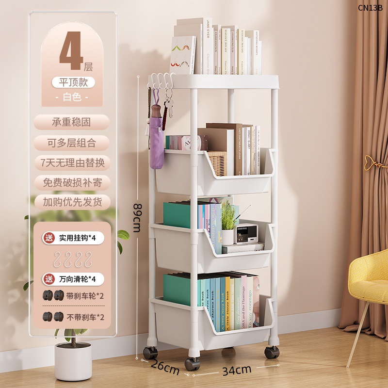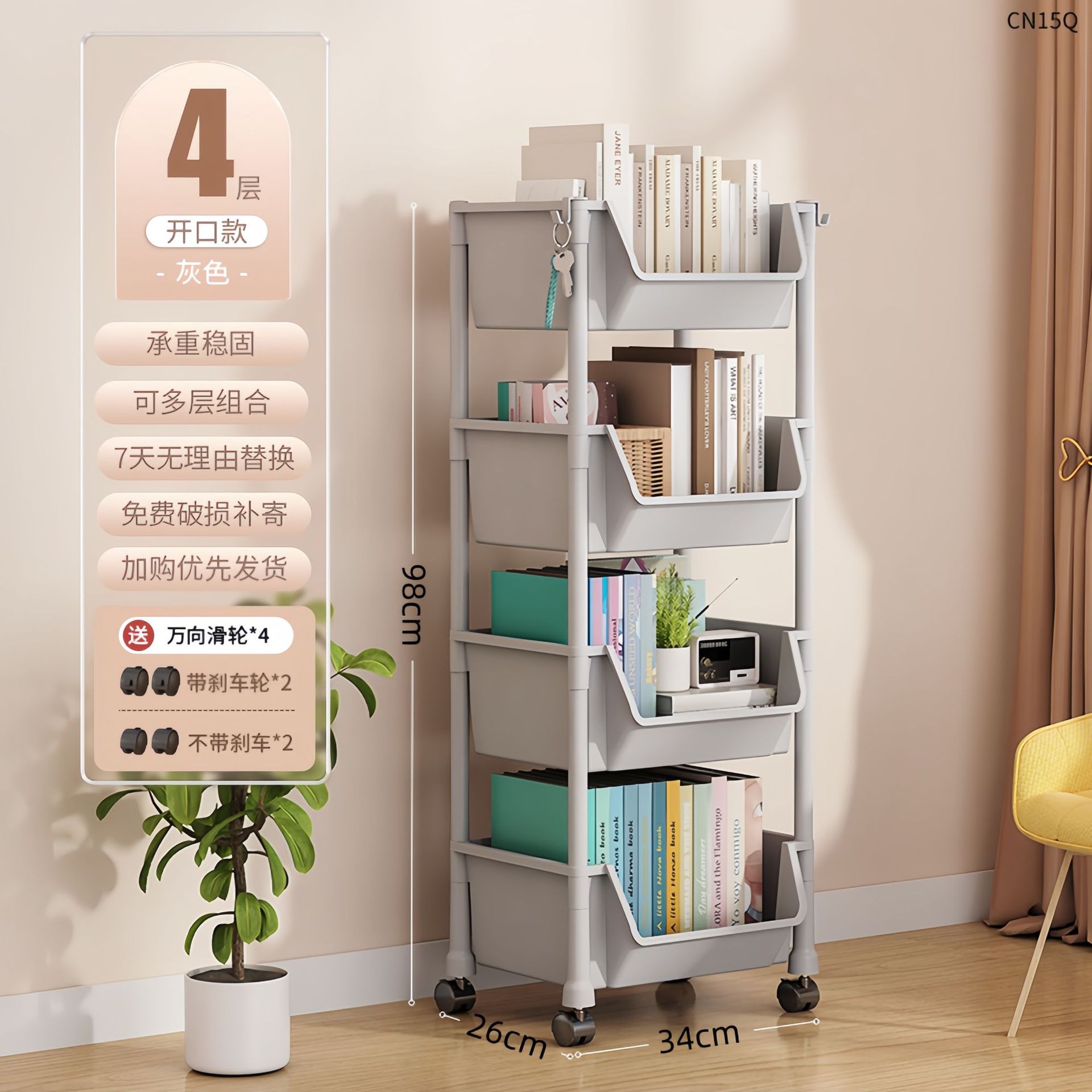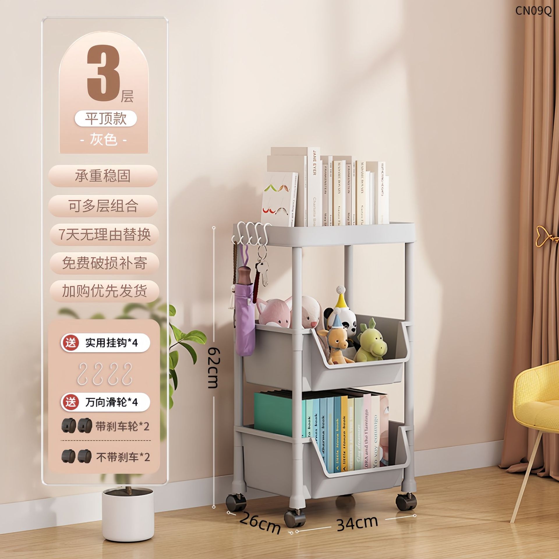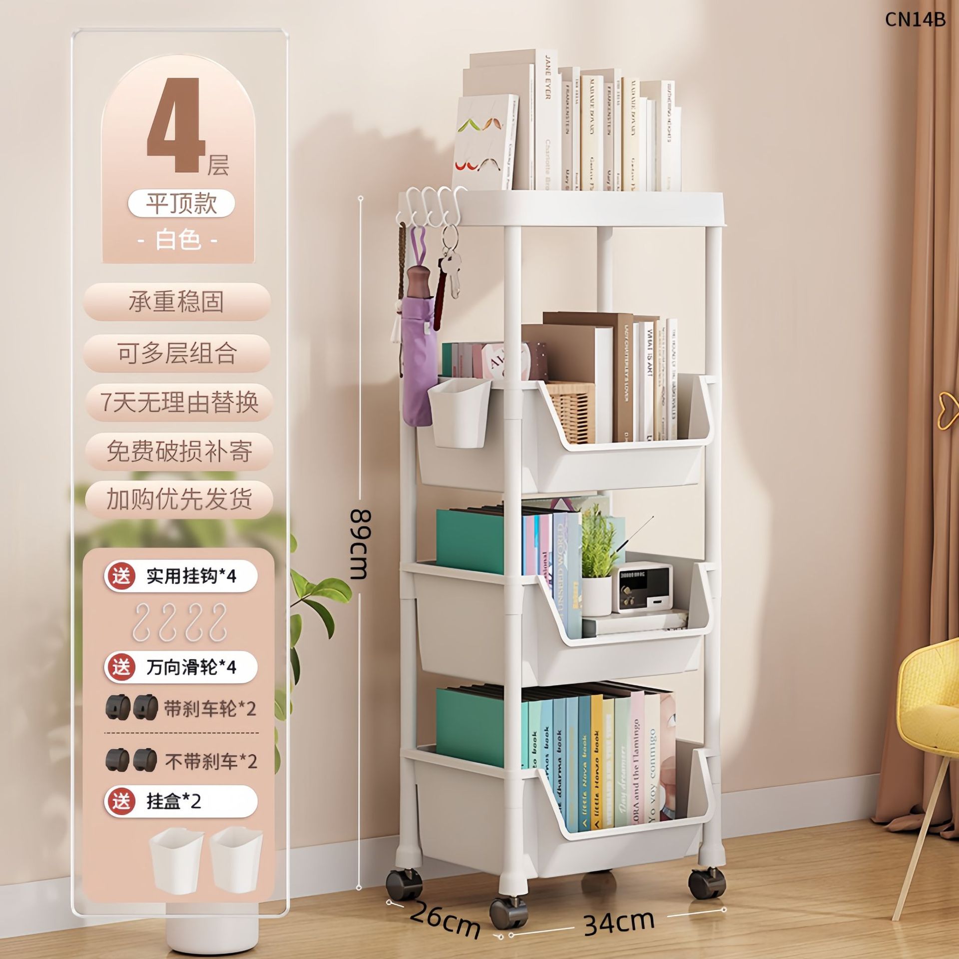 이동식 책장 보관 랙 어린이 장난감 보관 랙 다층 가정용 트롤리 바퀴 바닥 간단한 책장스토어 가기