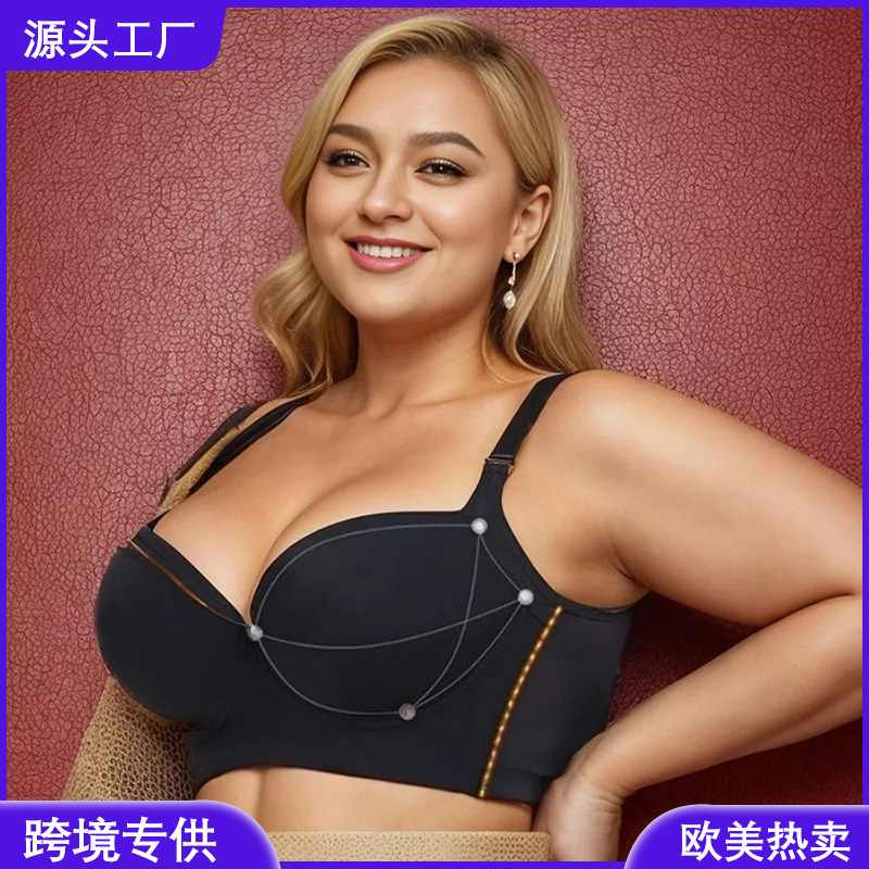 크로스보더 대형 사이즈 심플 속옷, 광택감 있는 심리스 여성용 푸쉬업 브라, 보조가슴 수축 및 처짐 방지, 큰 가슴을 더 작아 보이게 해주는 브라스토어 가기