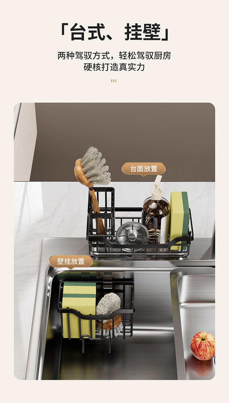 국경 간 싱크 스펀지 랙 손 소독제 비누 브러시 보관 바구니 배수 랙 주방 용품 카운터 탑 스토리지 랙