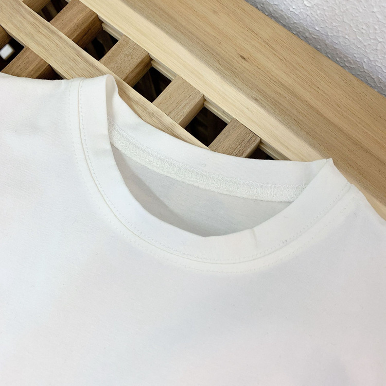 2025 한국어 버전 새로운 퍼프 슬리브 소녀 티셔츠 반팔 여름 메쉬 스플 라이스 중소형 소녀 기본 셔츠 dropshipping