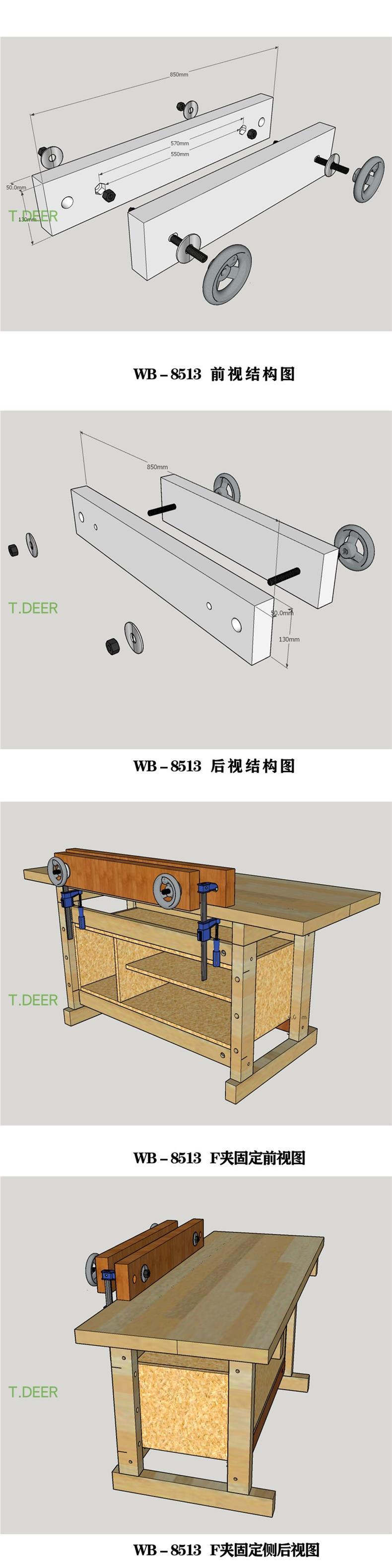 목공 테이블 바이스 WB8513-M 테이블 유형 너도밤나무 이중 플레이트 클램프