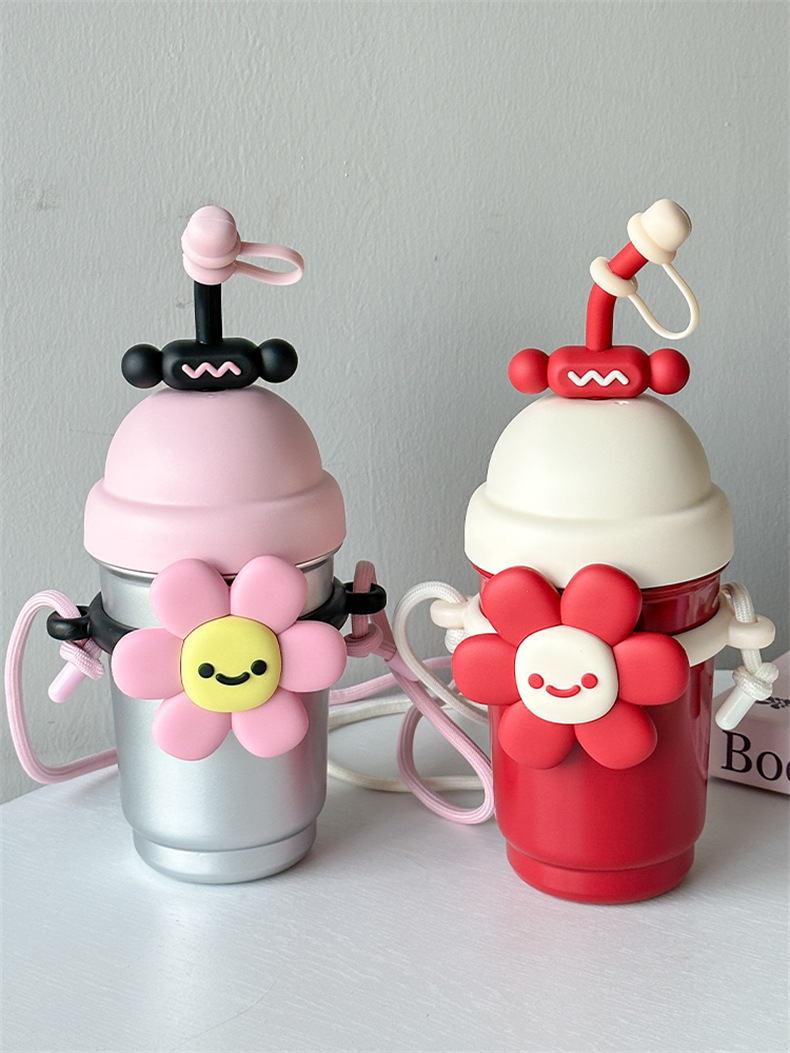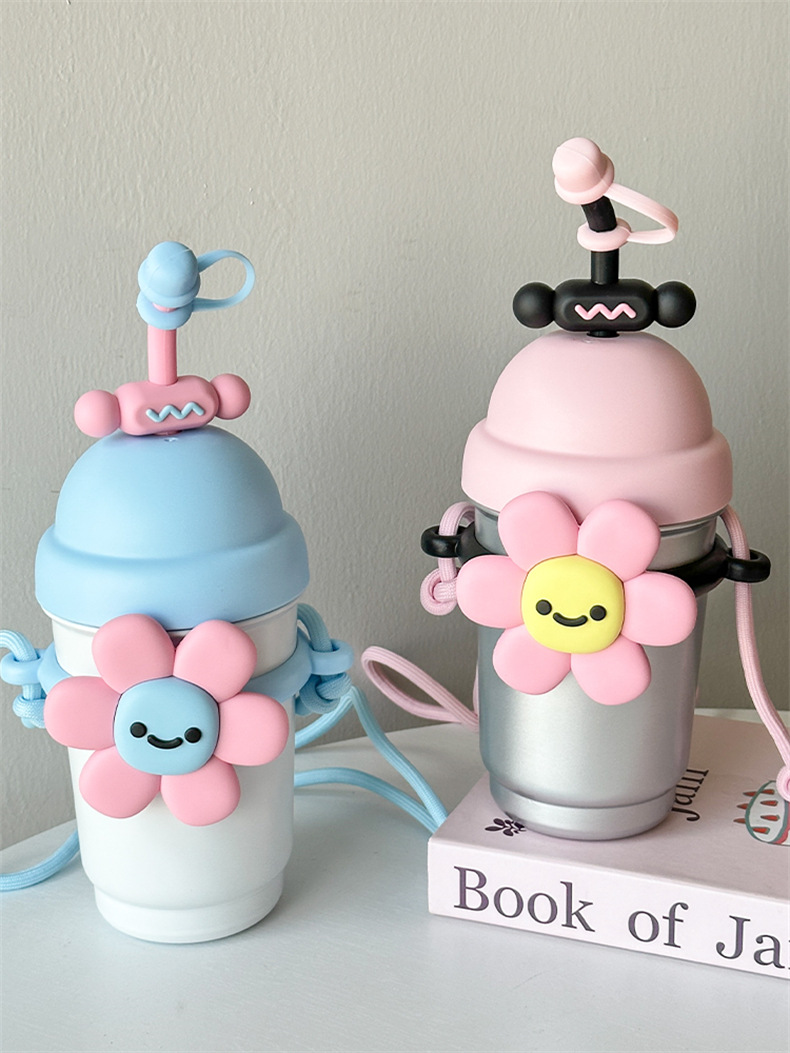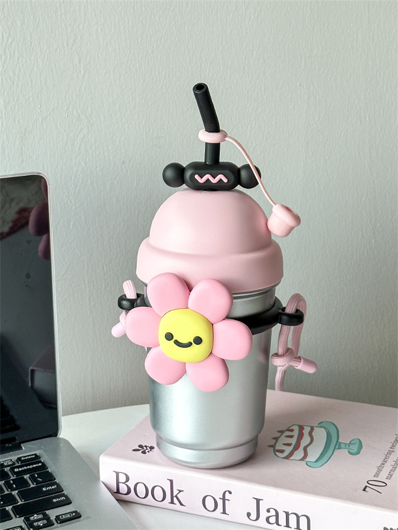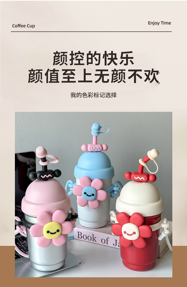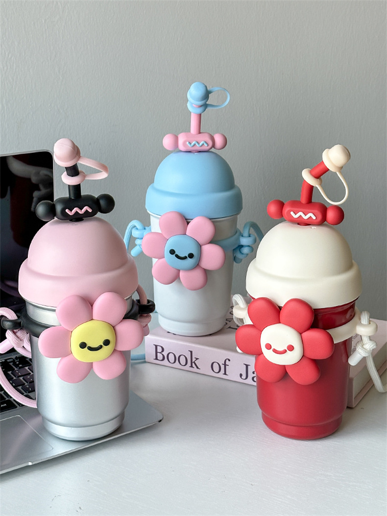 여성용 물컵 2025 새로운 해바라기 보온병 컵 대용량 고가 스테인레스 스틸 밀짚 휴대용 대각선 컵