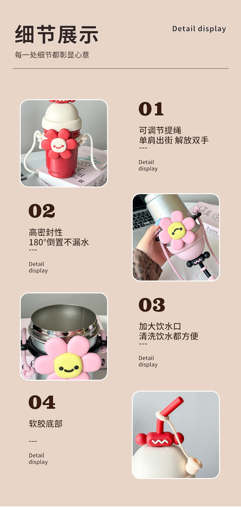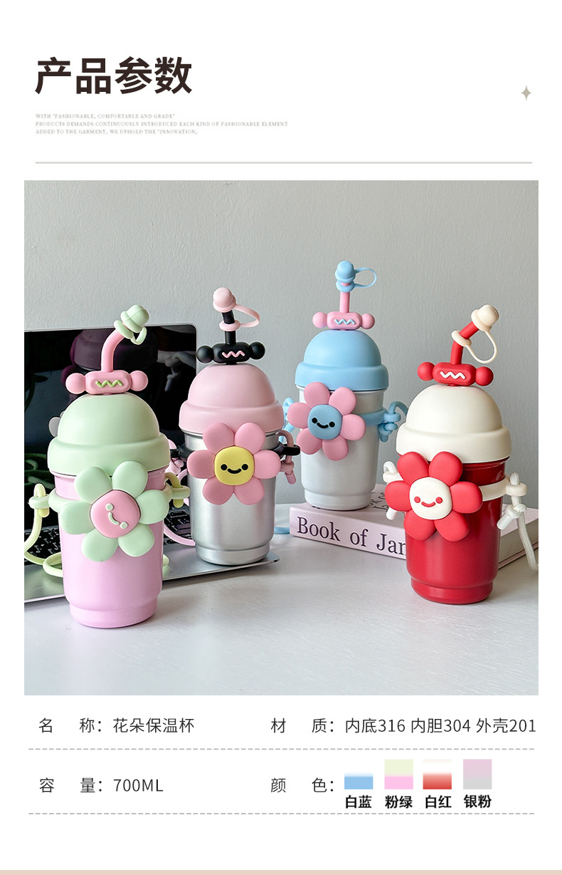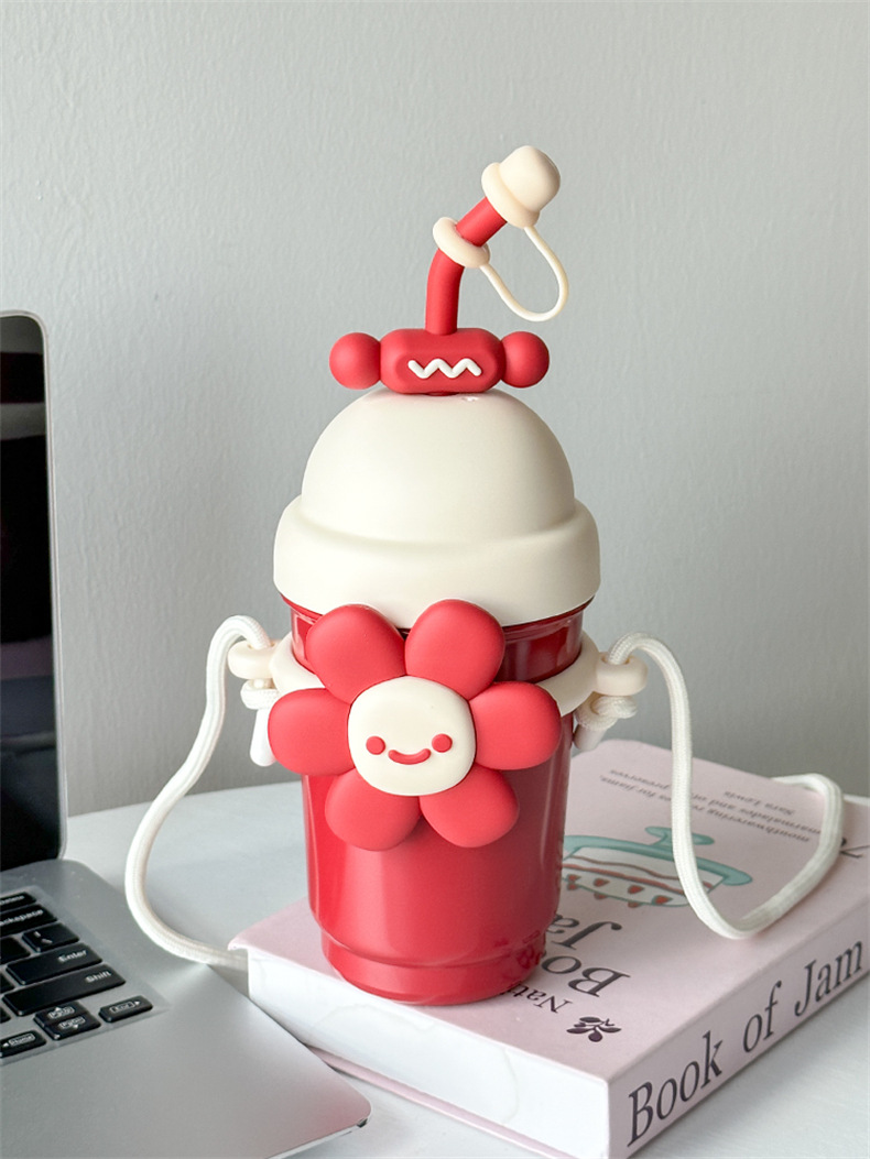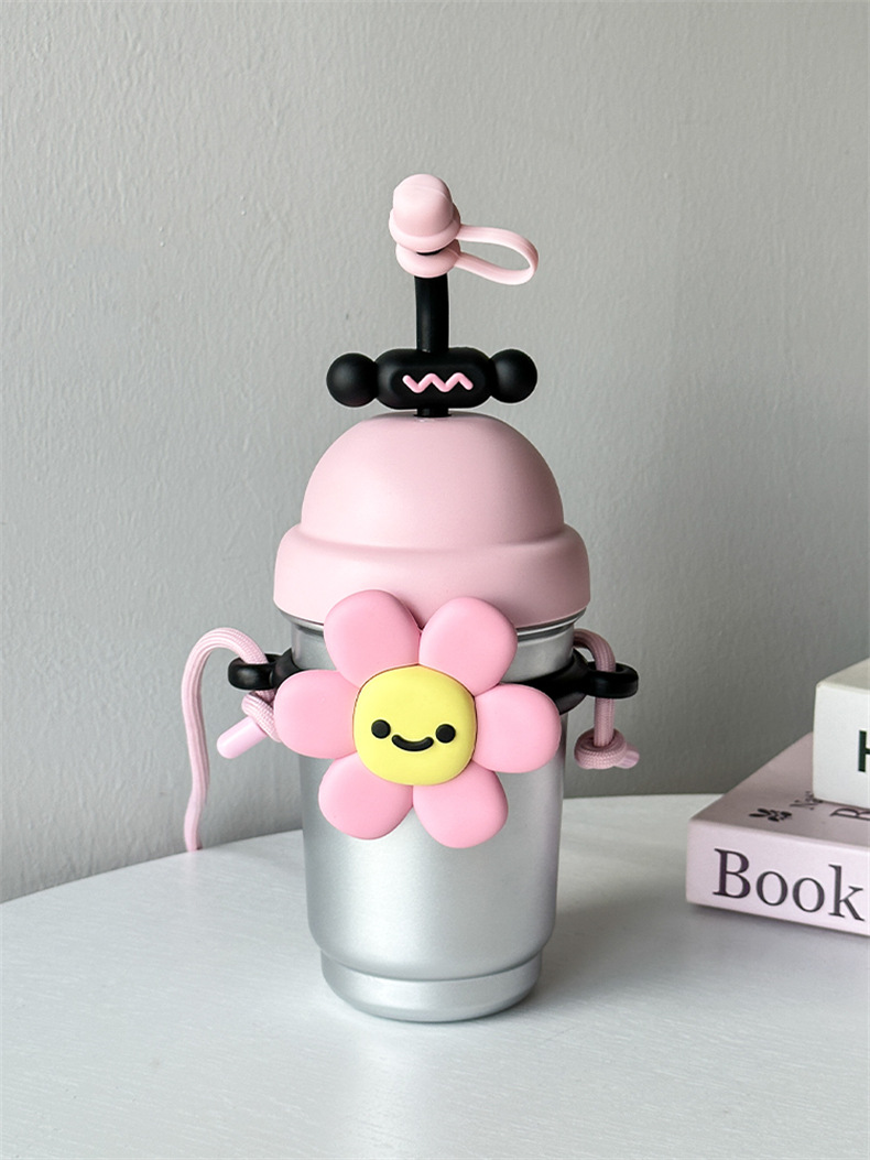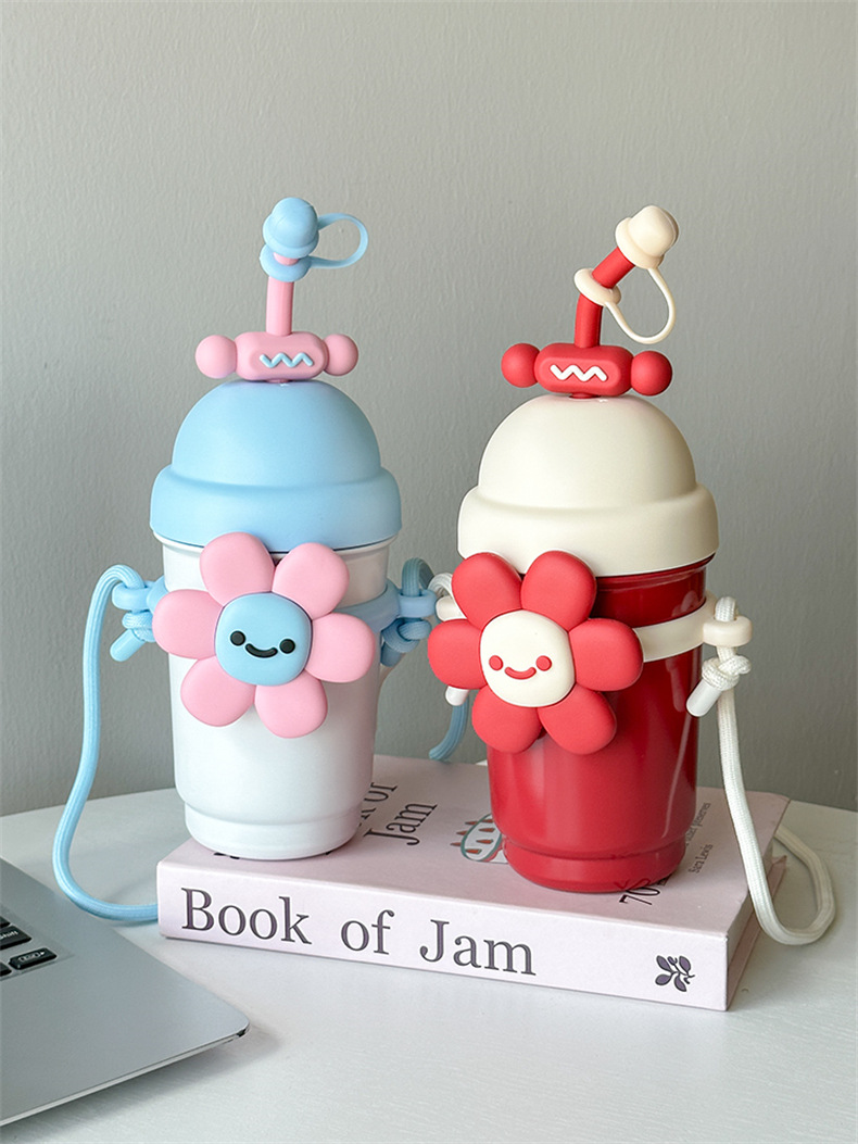 여성용 물컵 2025 새로운 해바라기 보온병 컵 대용량 고가 스테인레스 스틸 밀짚 휴대용 대각선 컵