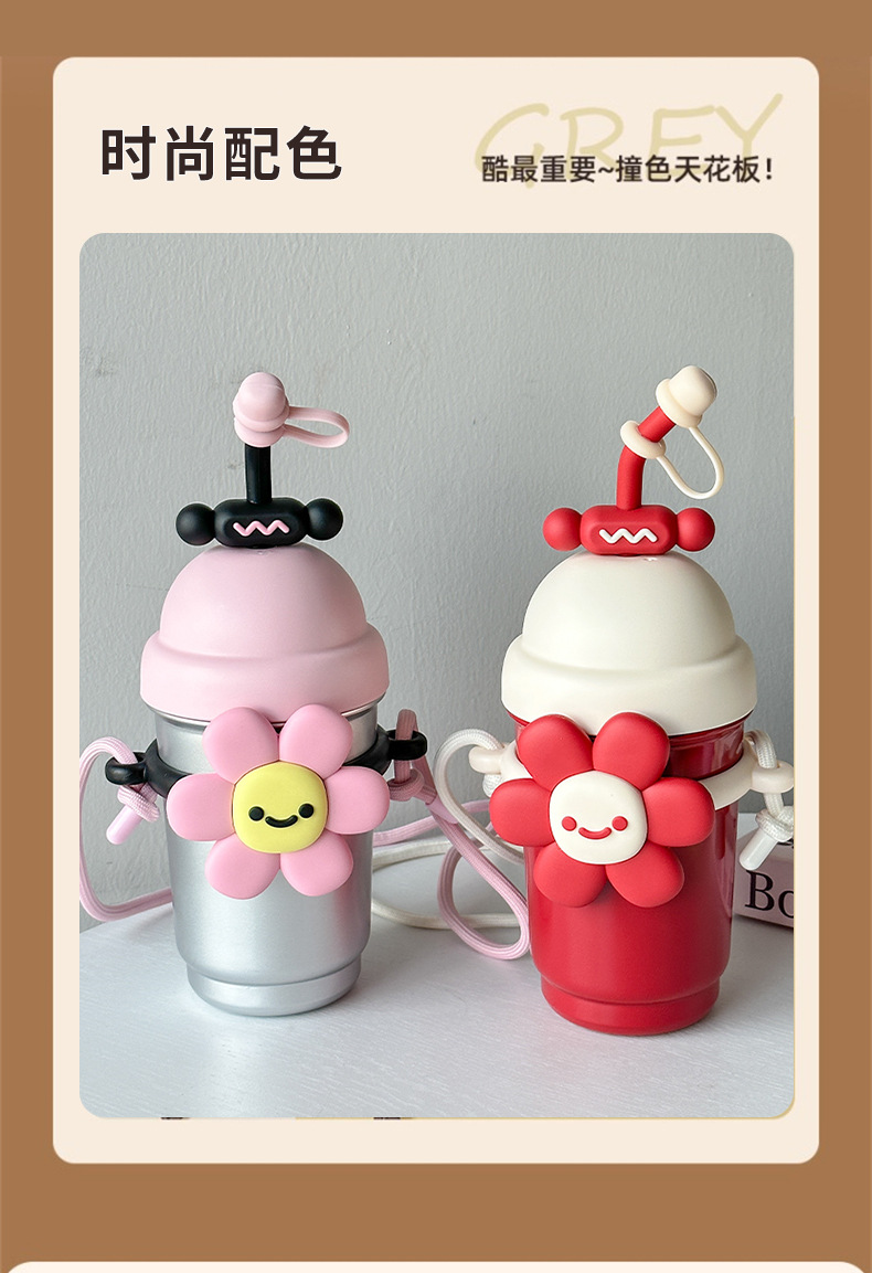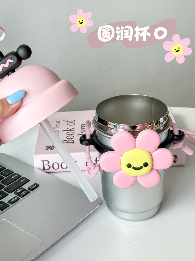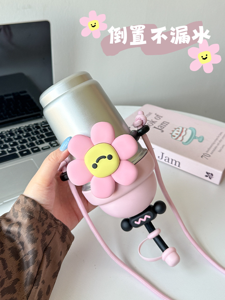 여성용 물컵 2025 새로운 해바라기 보온병 컵 대용량 고가 스테인레스 스틸 밀짚 휴대용 대각선 컵스토어 가기