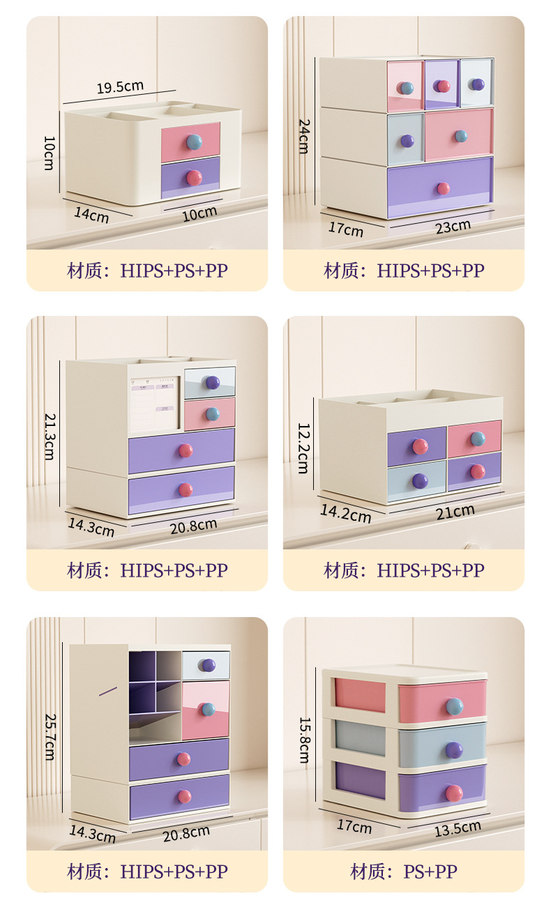 材质:支架、顶盖、把手 PP;抽屉 PS