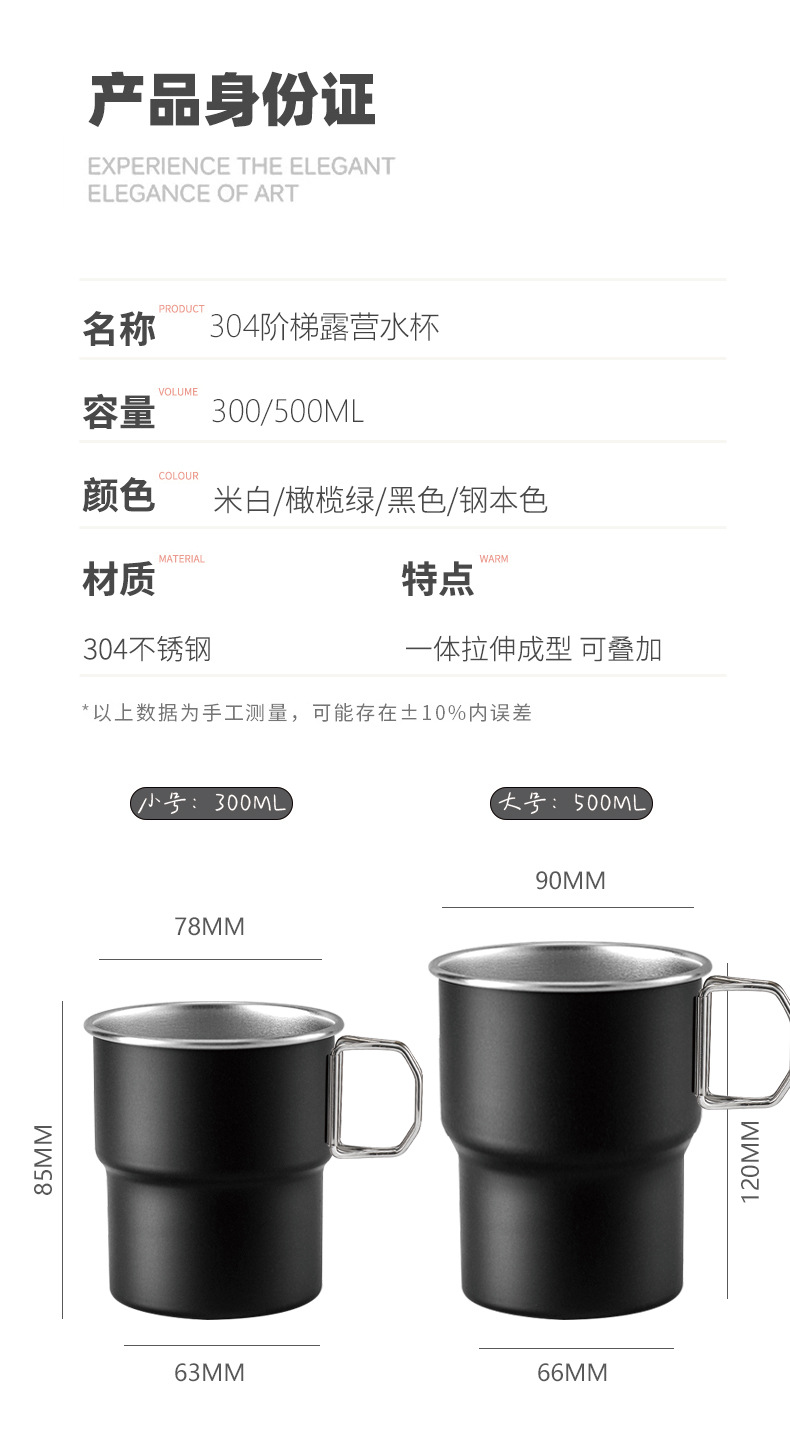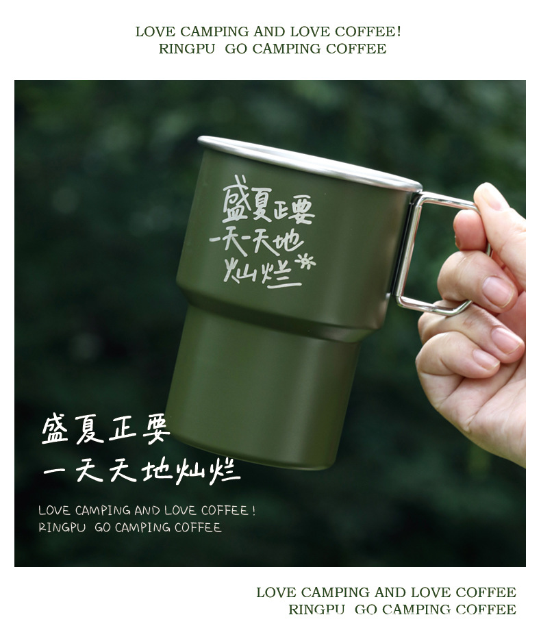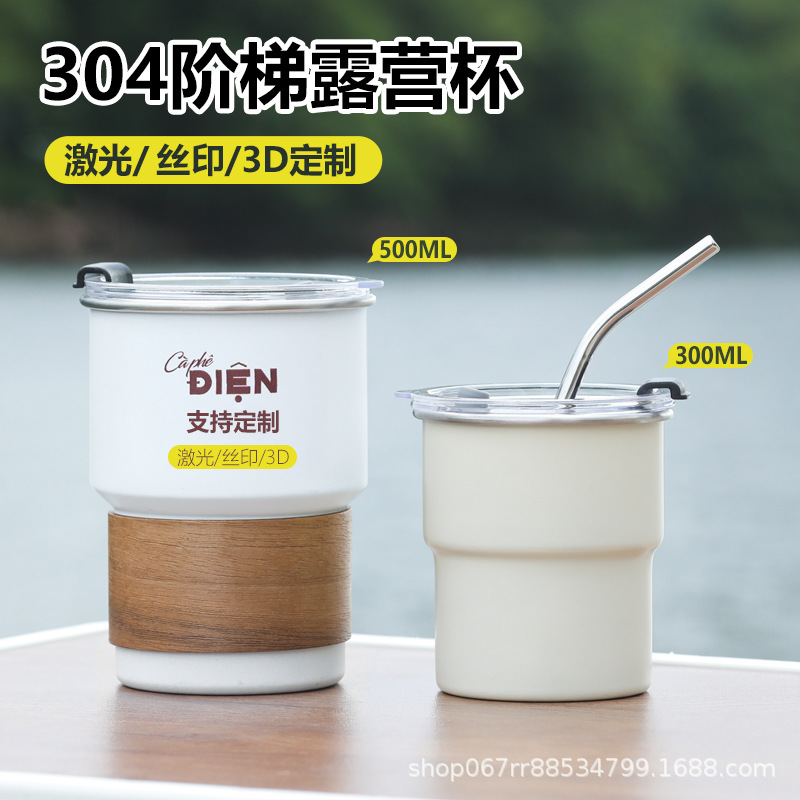 480ml 야외 캠핑 레터링 304 스테인레스 스틸 스텝 컵 싱글 레이어 편리한 맥주 컴팩트 커피 컵