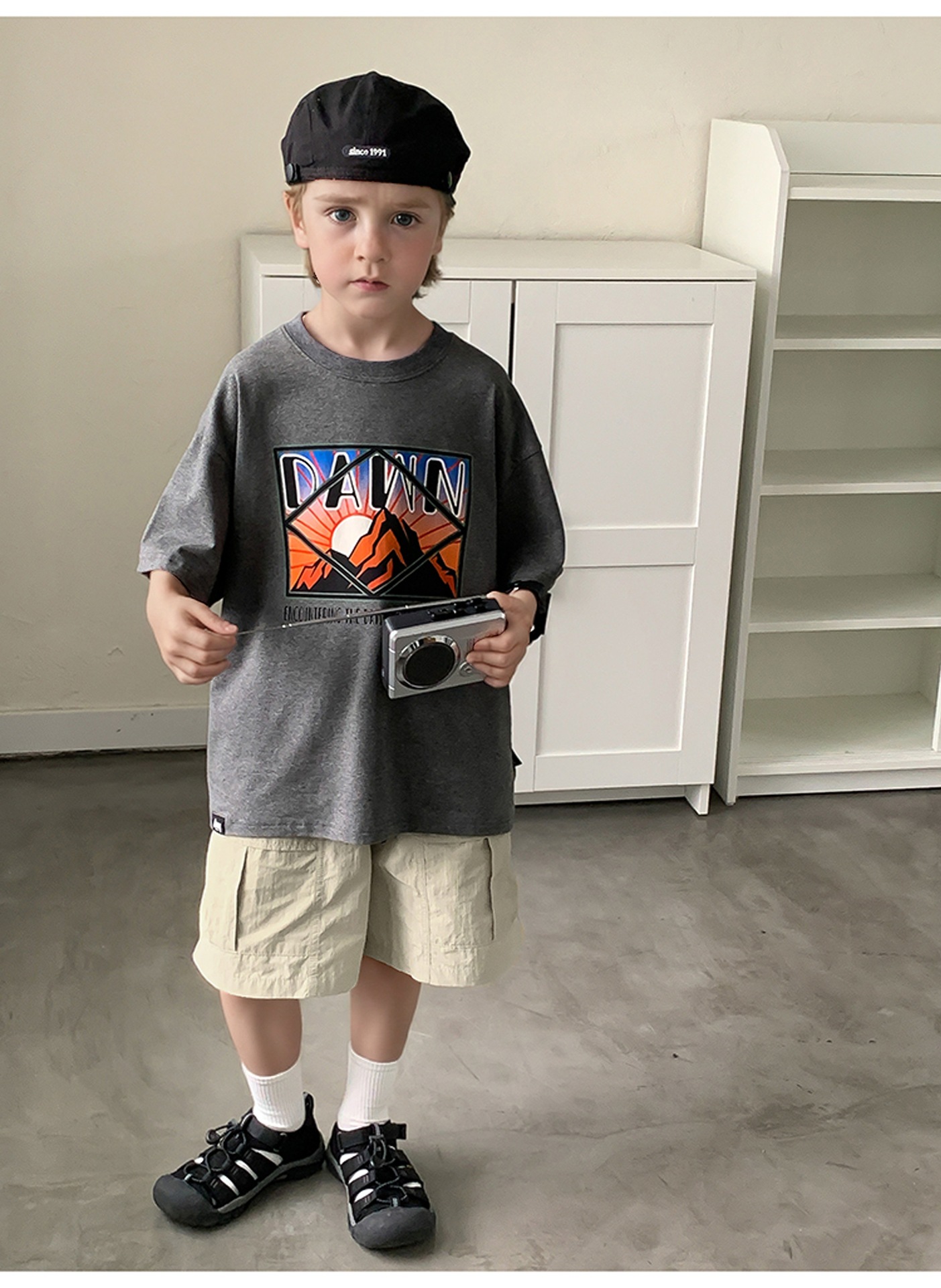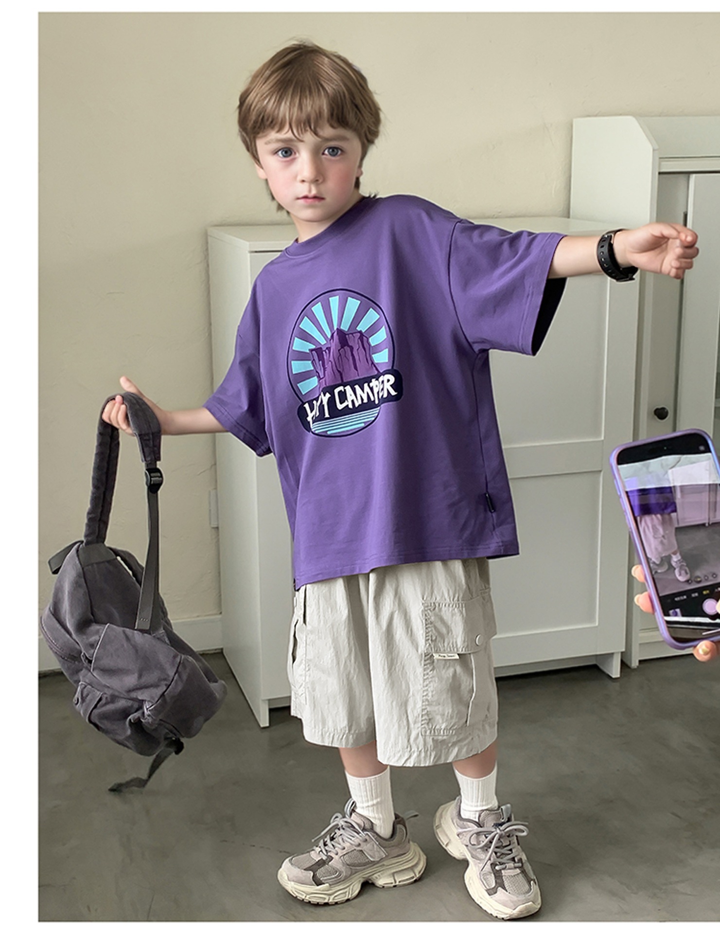 유행 아동복 소년 티셔츠 어린이 여름 반팔 2025 새로운 스타일 중대형 어린이 얇은 톱 소년 트렌디스토어 가기