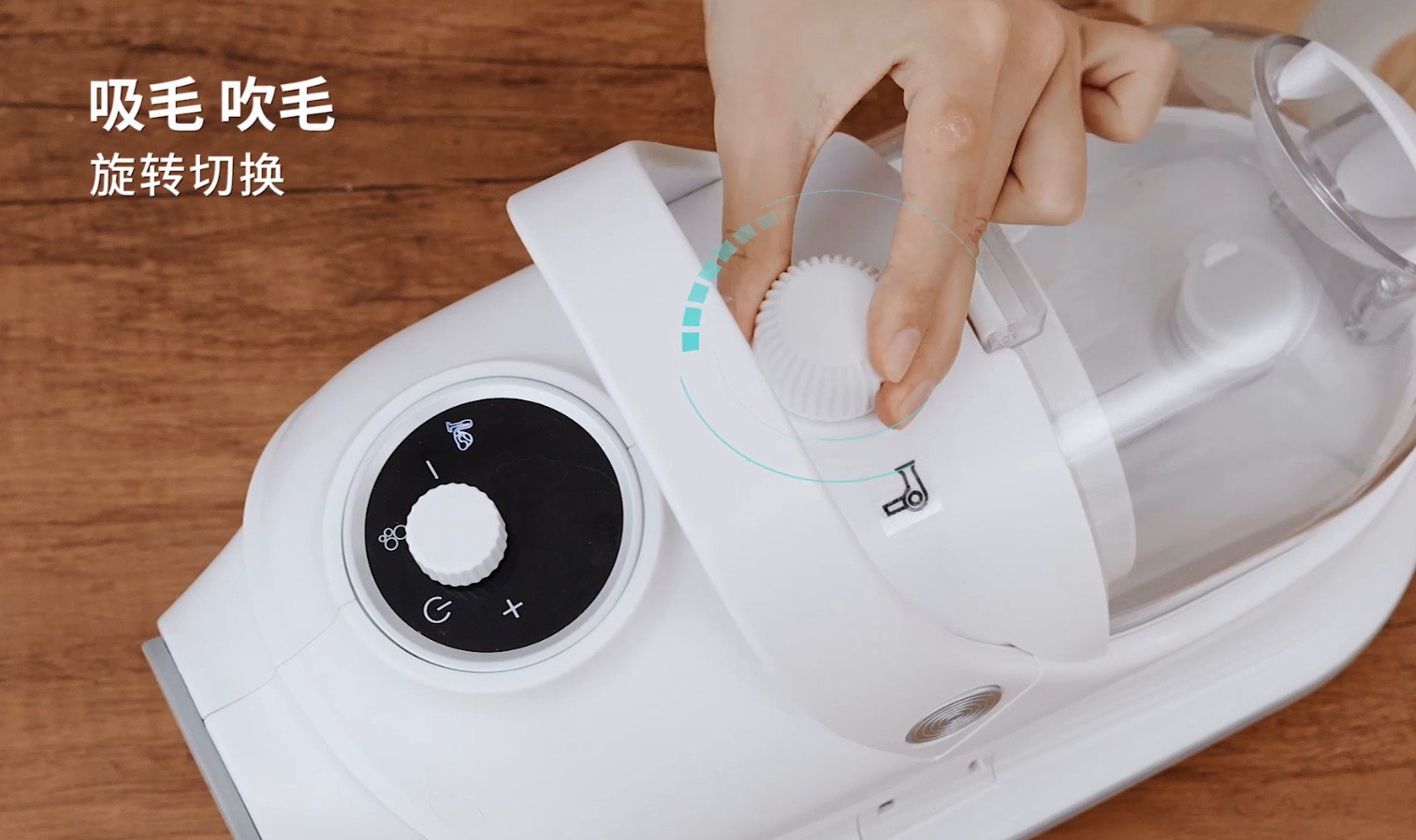 a.旋钮旋转到吸毛模式时控制面板上吸毛模式图标点亮吸毛模式激活。在此模式下顺时针旋转风量旋钮可以开启机器,吸力分为9档可自由调节。吸毛模式下不能使用加热和负离子功能。
