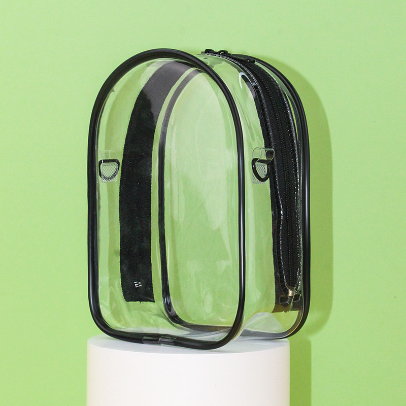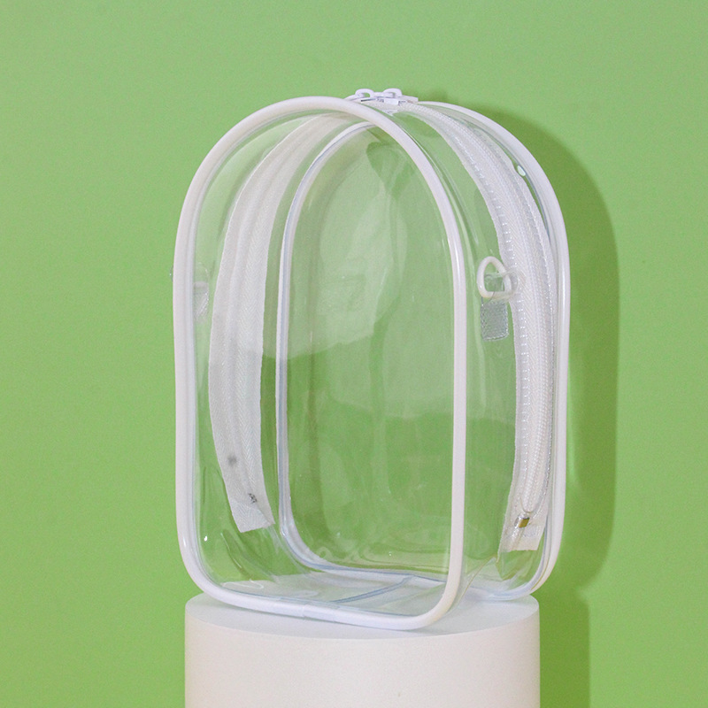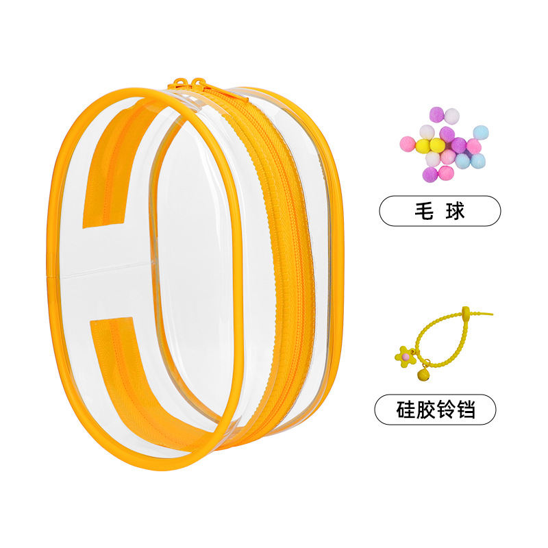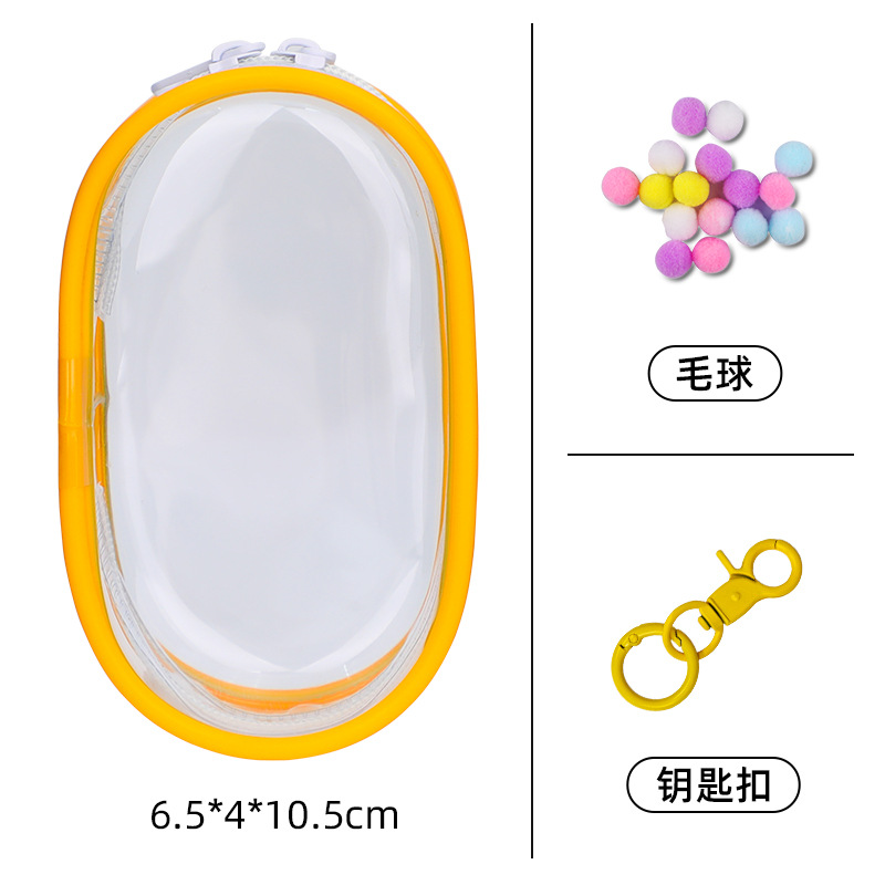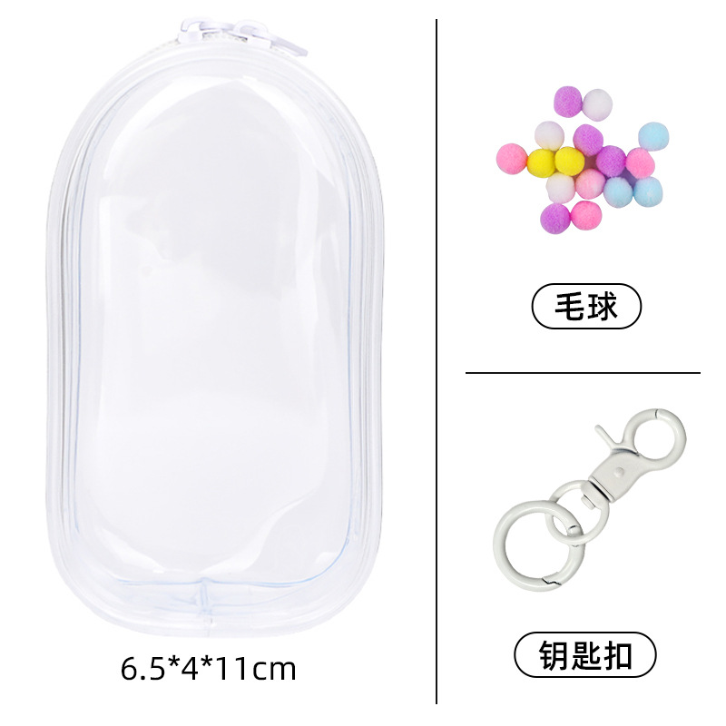 • 두꺼운 PVC 지퍼 [17.5cm] 타원형 - 투명 [가방 + 키링 + 폼폼]