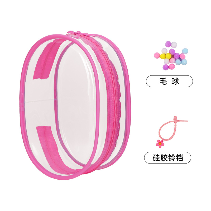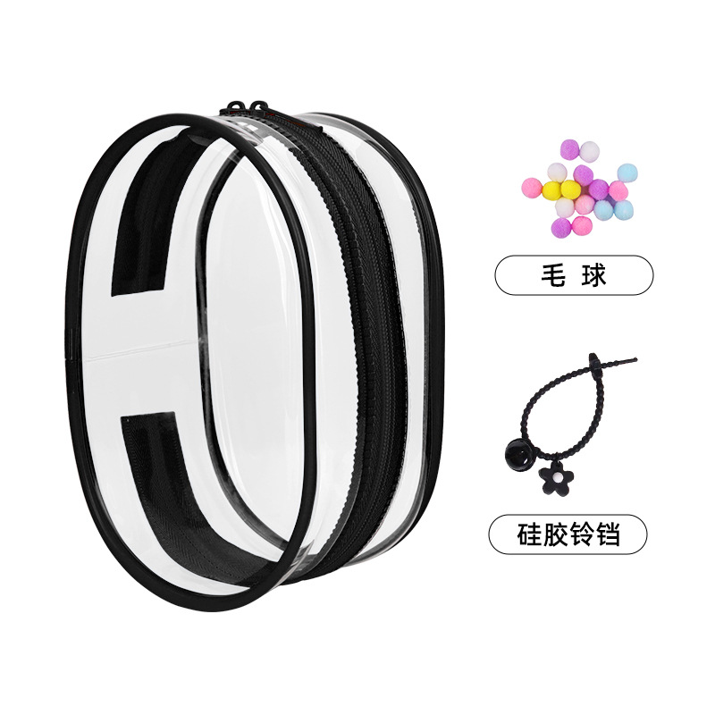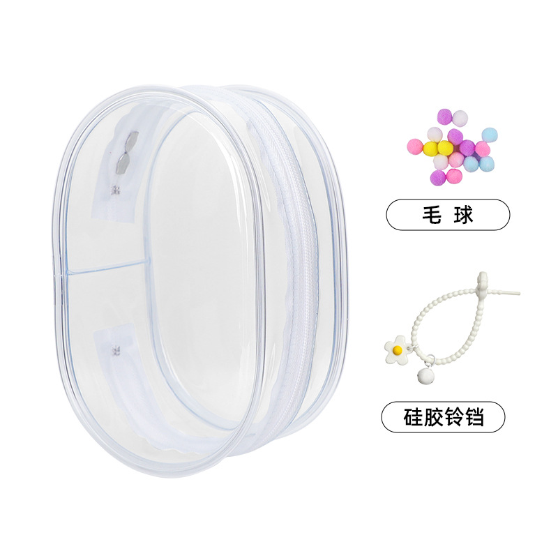 • 두꺼운 PVC 지퍼 [14cm] 타원형 - 투명 [가방 + 키링 + 폼폼]