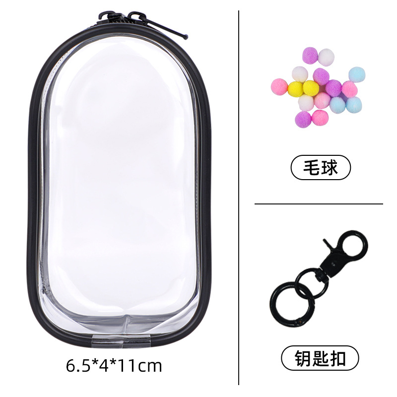 • 두꺼워진 PVC 지퍼 [15.5cm] 타원형 - 투명 [가방 + 열쇠고리 + 헤어볼]