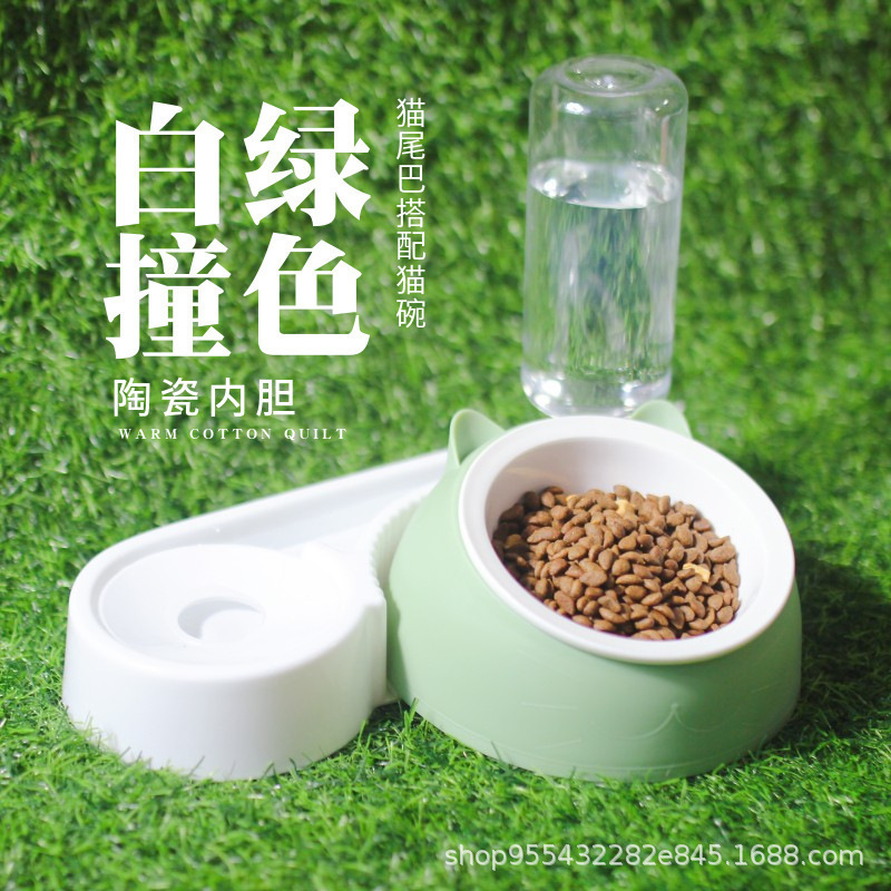 고양이 그릇 세라믹 더블 그릇 자동 식수 개 음식 분지 테디 라이스 분지 애완 동물 마시는 물 개 피더 고양이 용품
