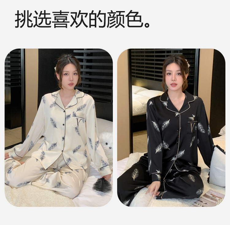 봄과 가을 여성 워터 글로시 실크 긴팔 잠옷 얼음 실크 얇은 실크 홈웨어 세트 Пижама스토어 가기