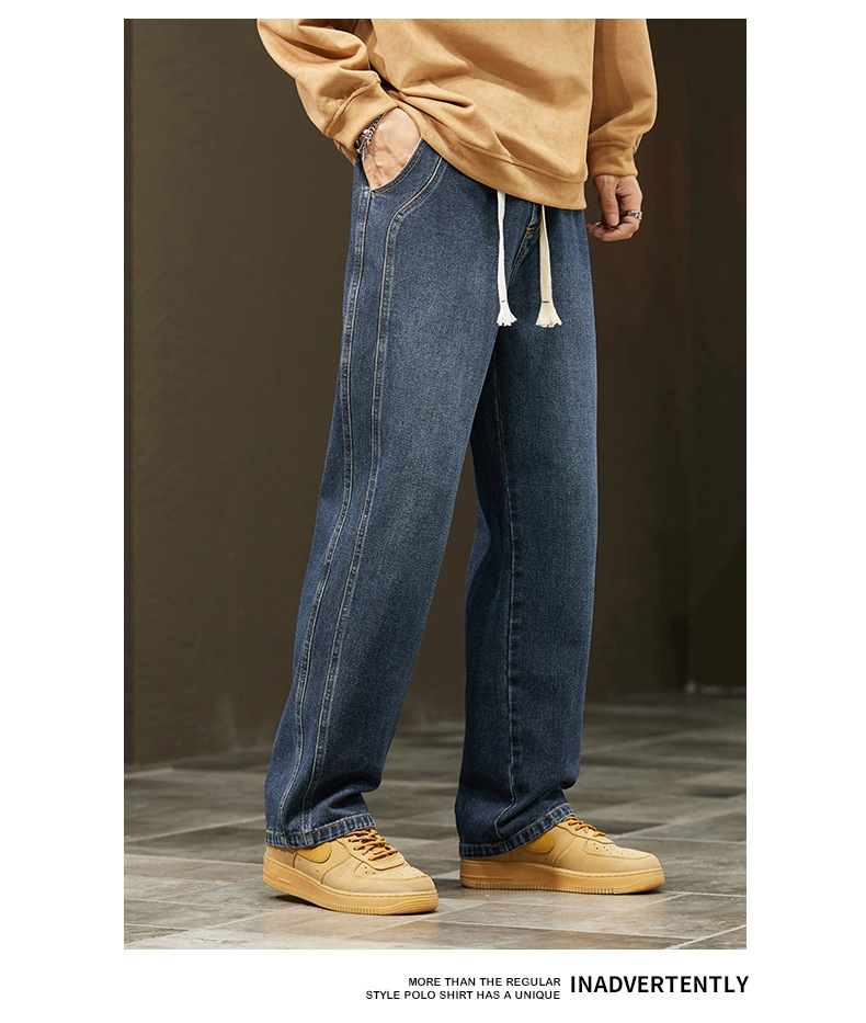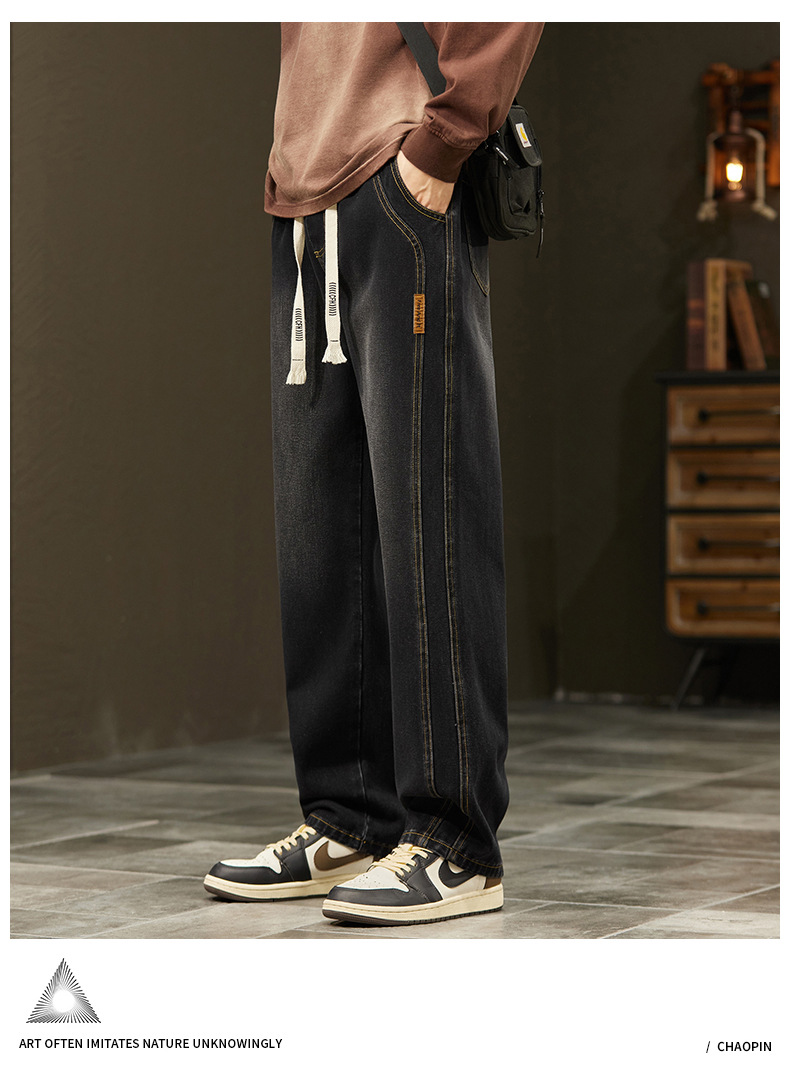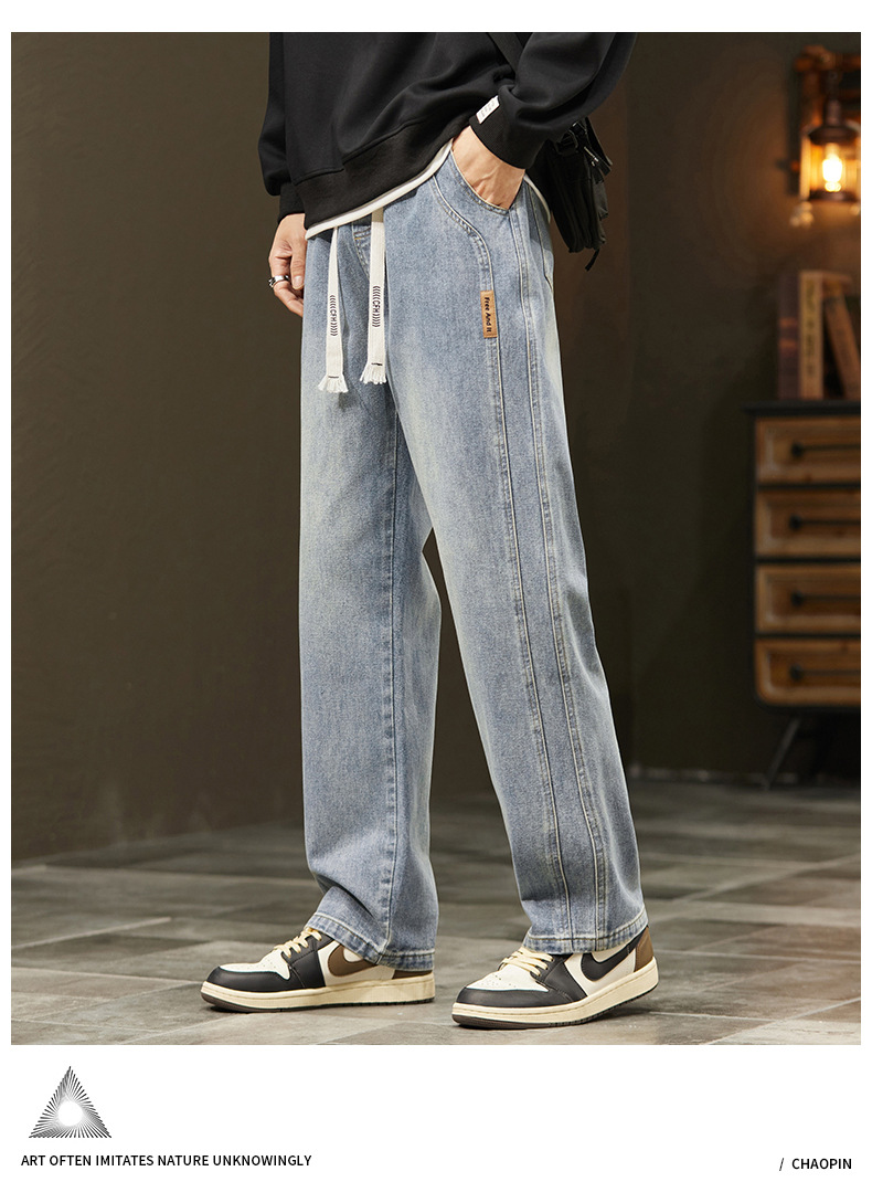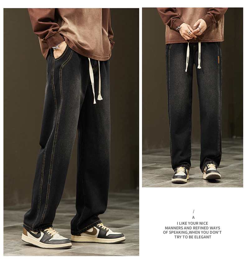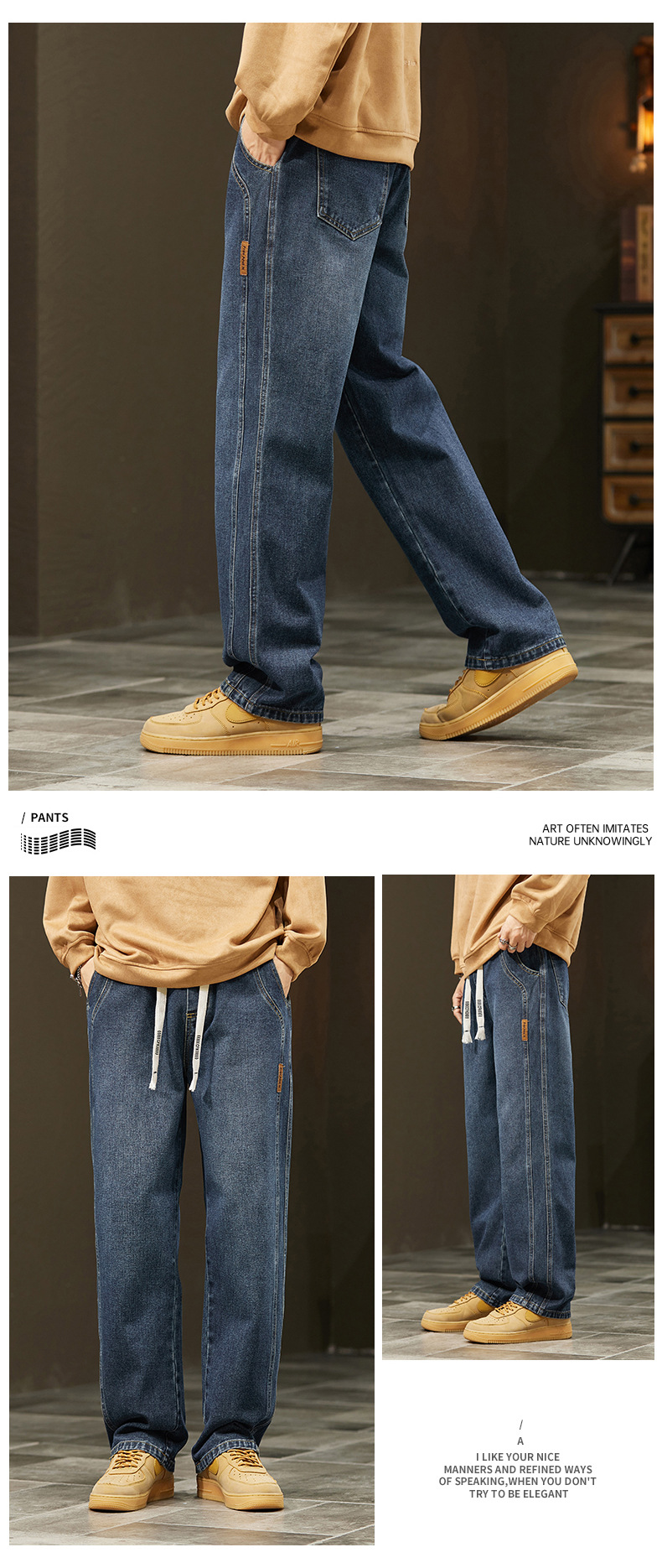 아메리칸 스타일 레트로 청바지 남자 봄 가을과 겨울 2024 새로운 스트레이트 느슨한 넓은 다리 바지스토어 가기