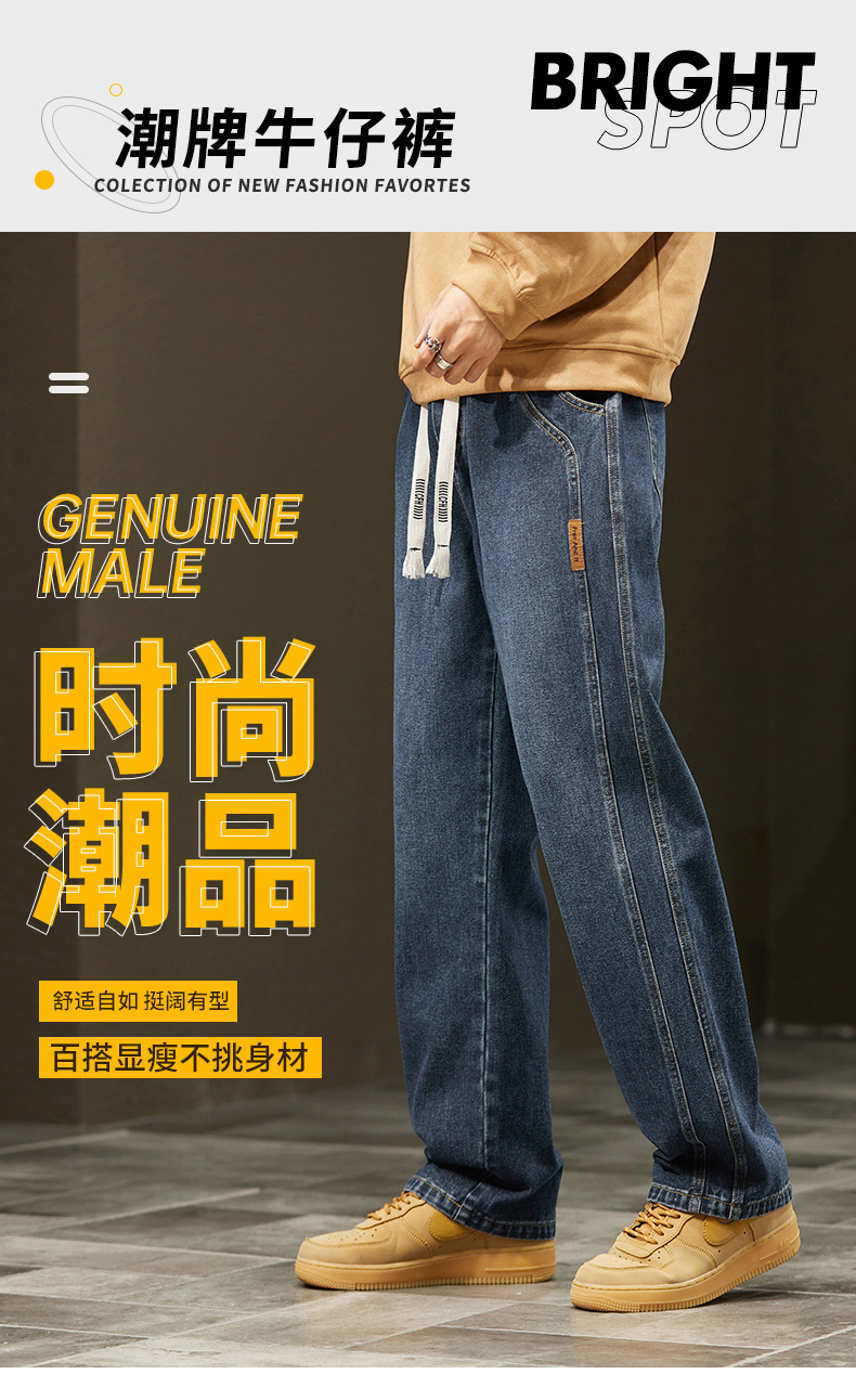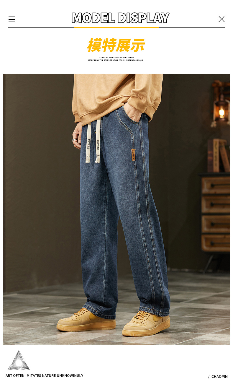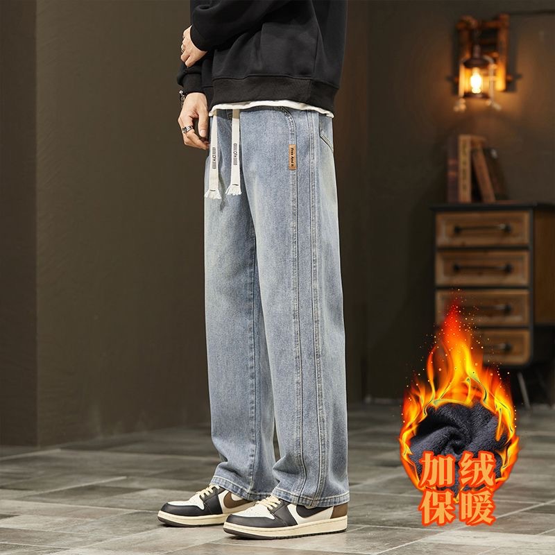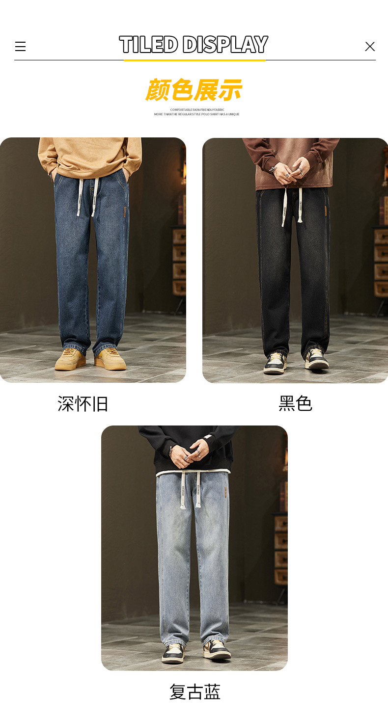 아메리칸 스타일 레트로 청바지 남자 봄 가을과 겨울 2024 새로운 스트레이트 느슨한 넓은 다리 바지스토어 가기