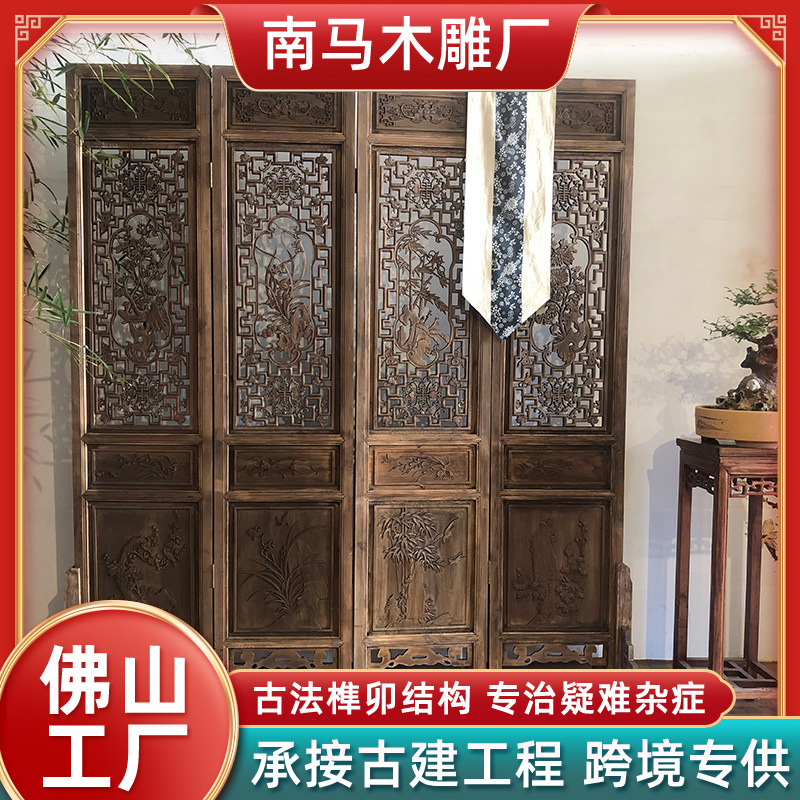 중국 단단한 나무 스크린 골동품 오래된 중공 조각 장뇌 나무 접이식 모바일 거실 파티션 복고풍 쉼터스토어 가기