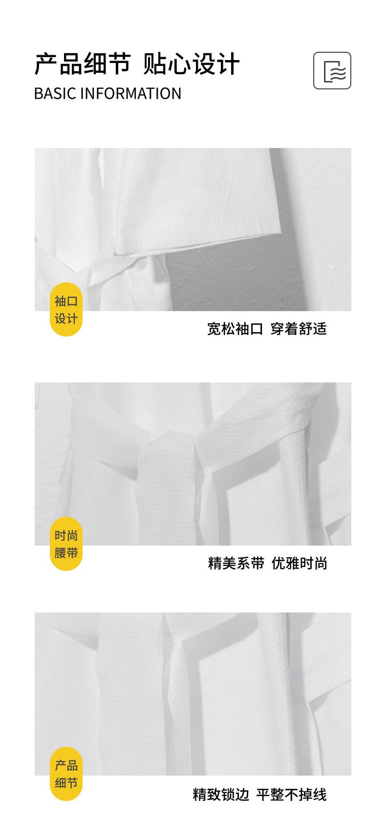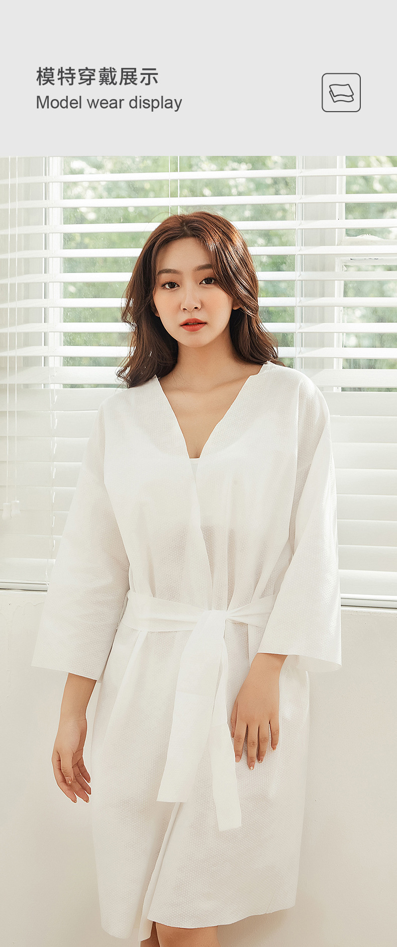 • 일회용 목욕 가운 일반 흰색 길이 90cm 무게 50