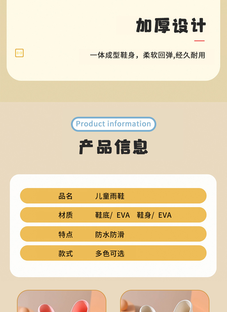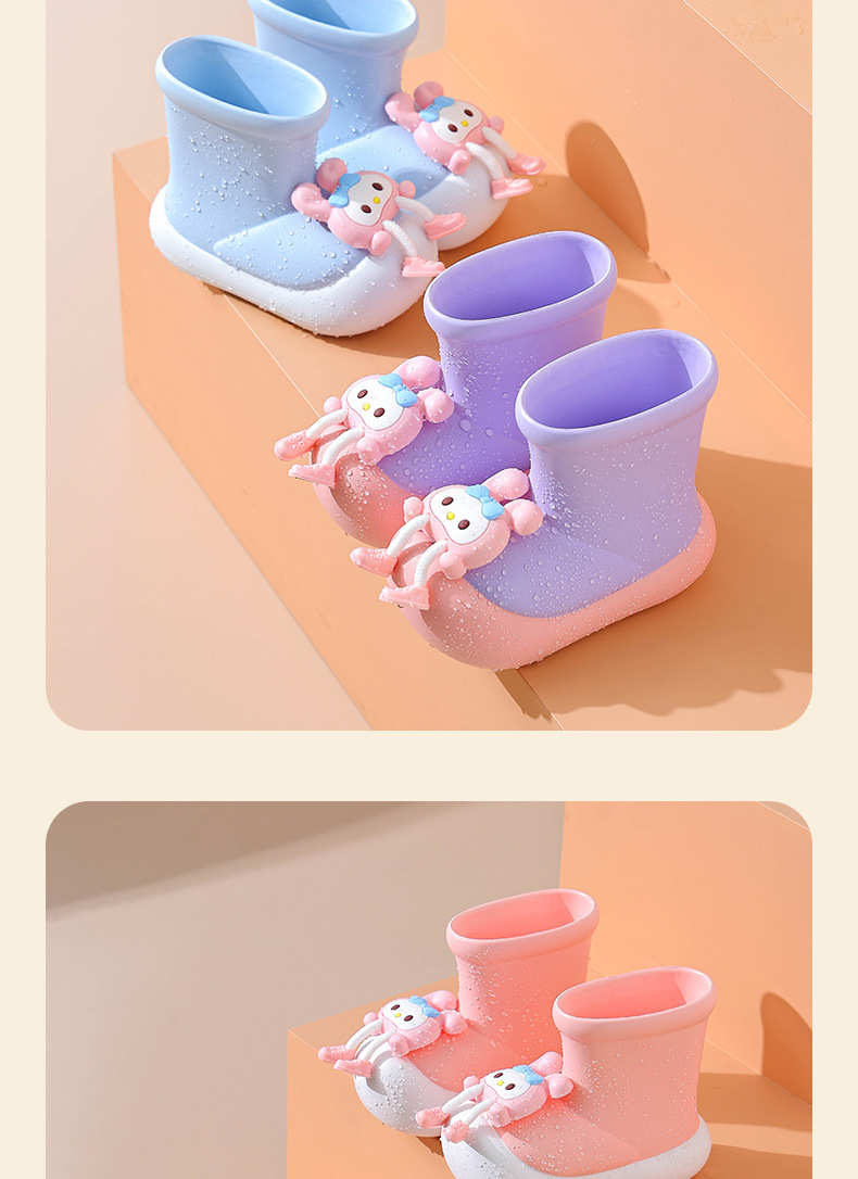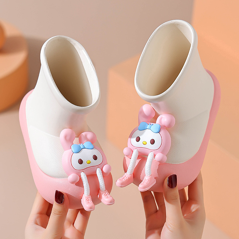 귀여운 만화 어린이 비 신발 새로운 방수 미끄럼 방지 부드러운 바닥 아기 비 신발 유치원 야외 낮은 튜브 물 신발