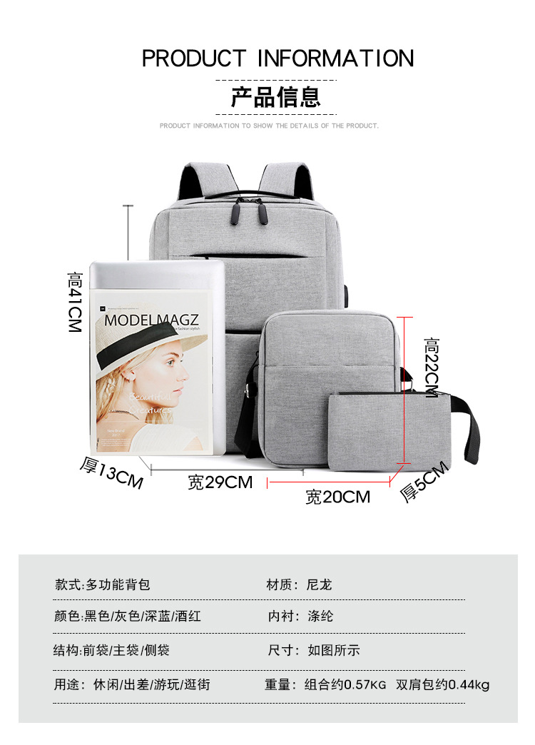 국경 새 3 종 배낭 비즈니스 선물 세트 컴퓨터 배낭 한국 단색 간단한 주니어 스쿨 백스토어 가기