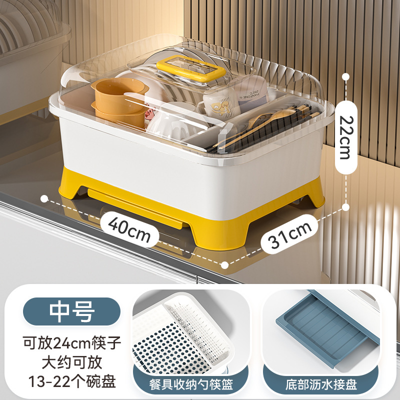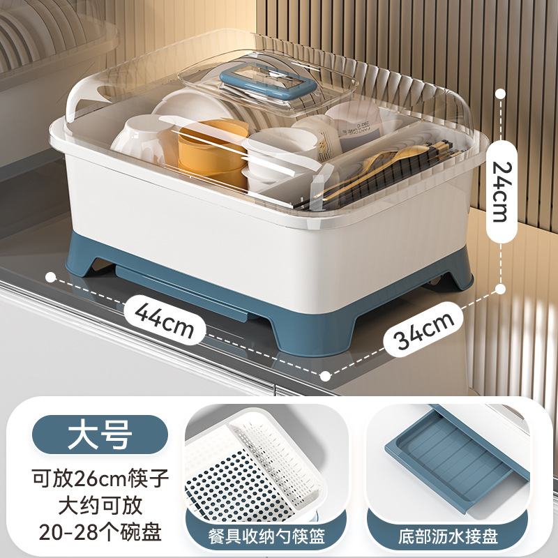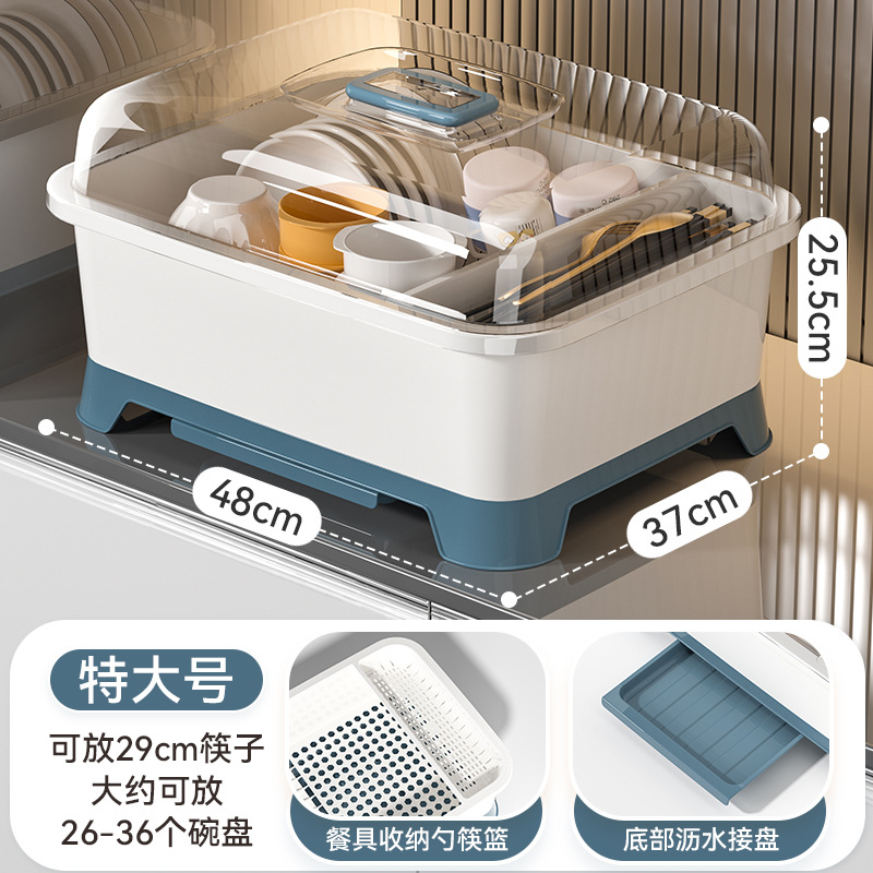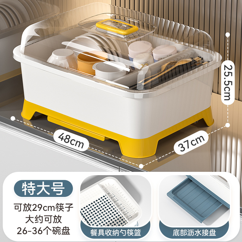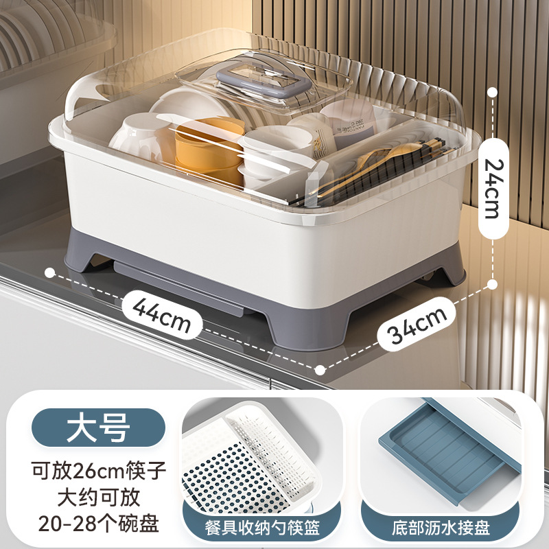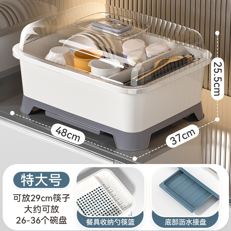 접시 식기 세척기가있는 뚜껑이있는 덮개가있는 그릇 및 젓가락 보관 상자 주방 가정용 그릇 랙 보관 랙 Beixiangwo스토어 가기