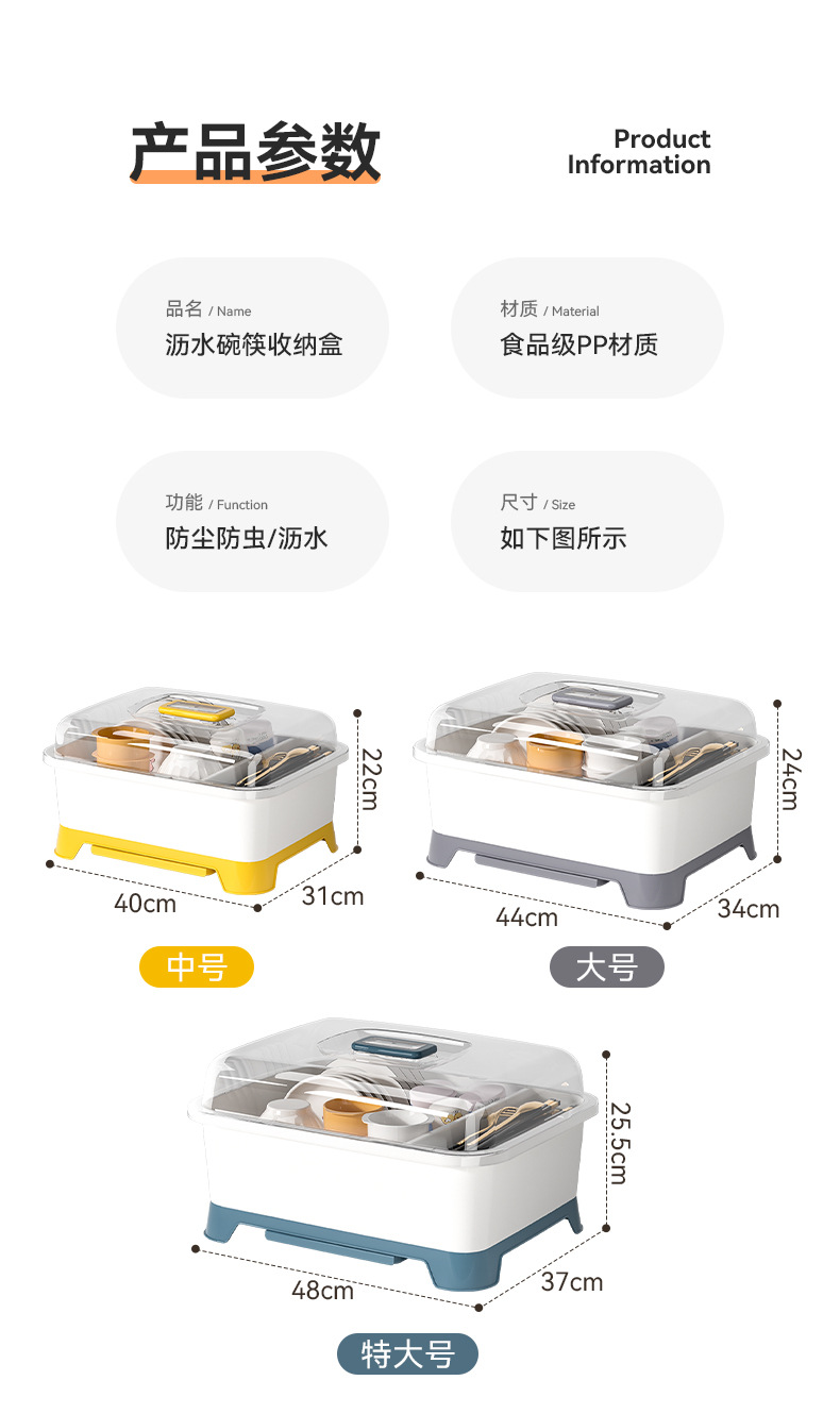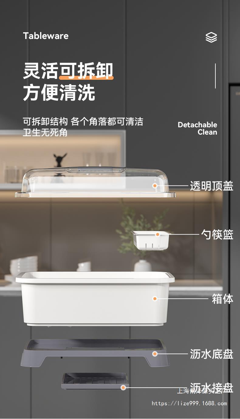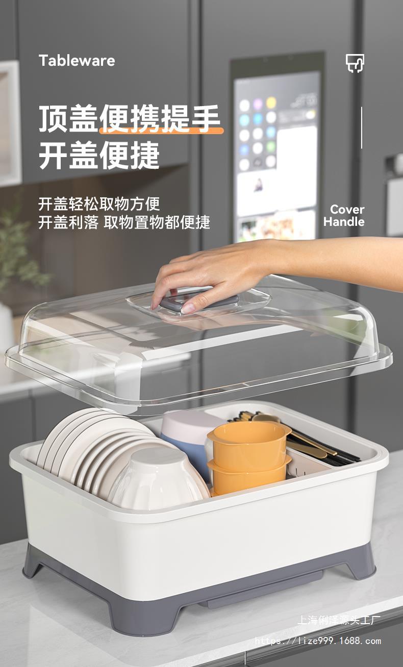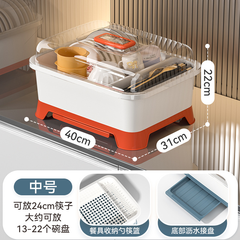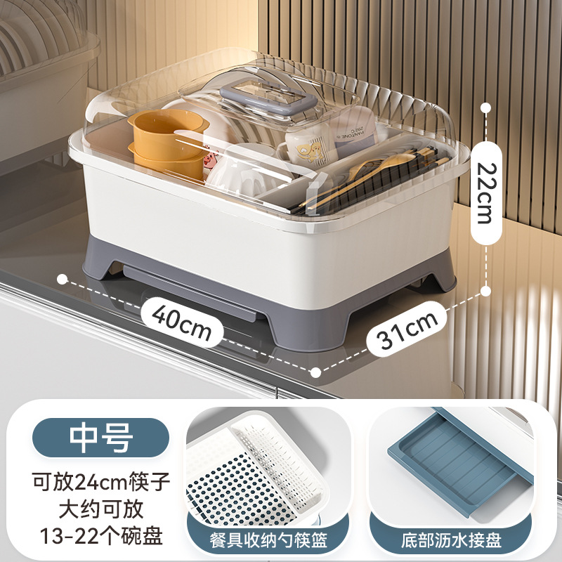 접시 식기 세척기가있는 뚜껑이있는 덮개가있는 그릇 및 젓가락 보관 상자 주방 가정용 그릇 랙 보관 랙 Beixiangwo스토어 가기