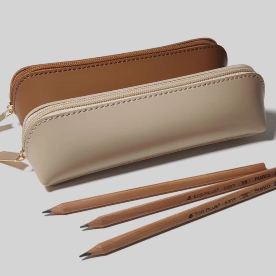 새로운 간단한 가죽 연필 가방 대학생 연필 가방 대용량 문구 가방 일본 스타일의 저장 가방