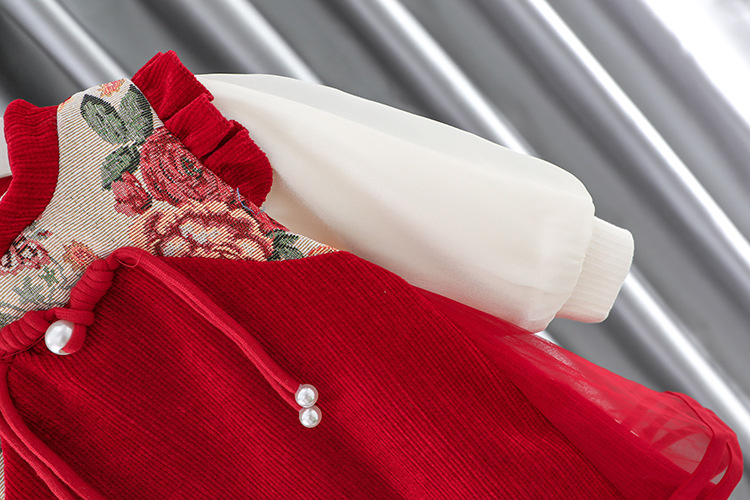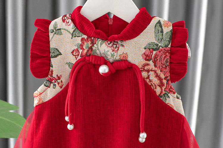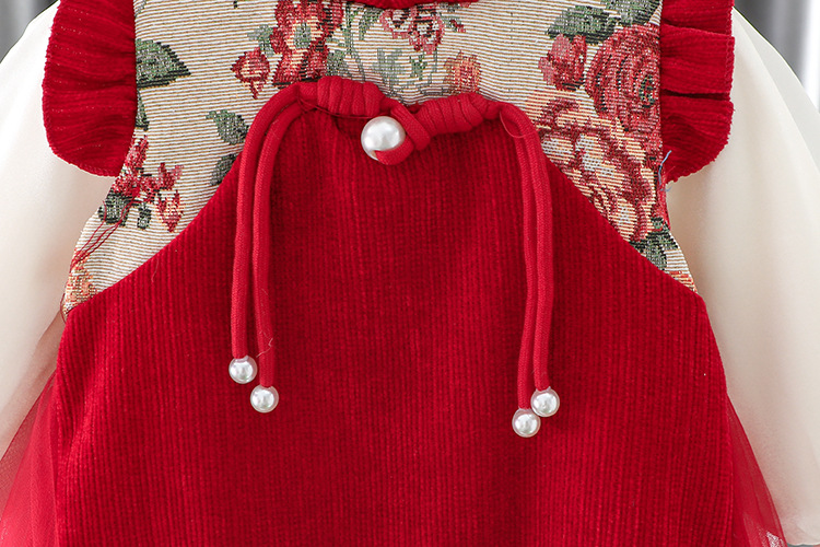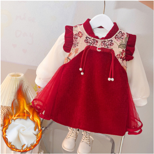 대외 무역 도매 아기 소녀 겨울 기모 원피스 1 세 아기 복고풍 1 세 원피스 겨울 라이브 공급스토어 가기