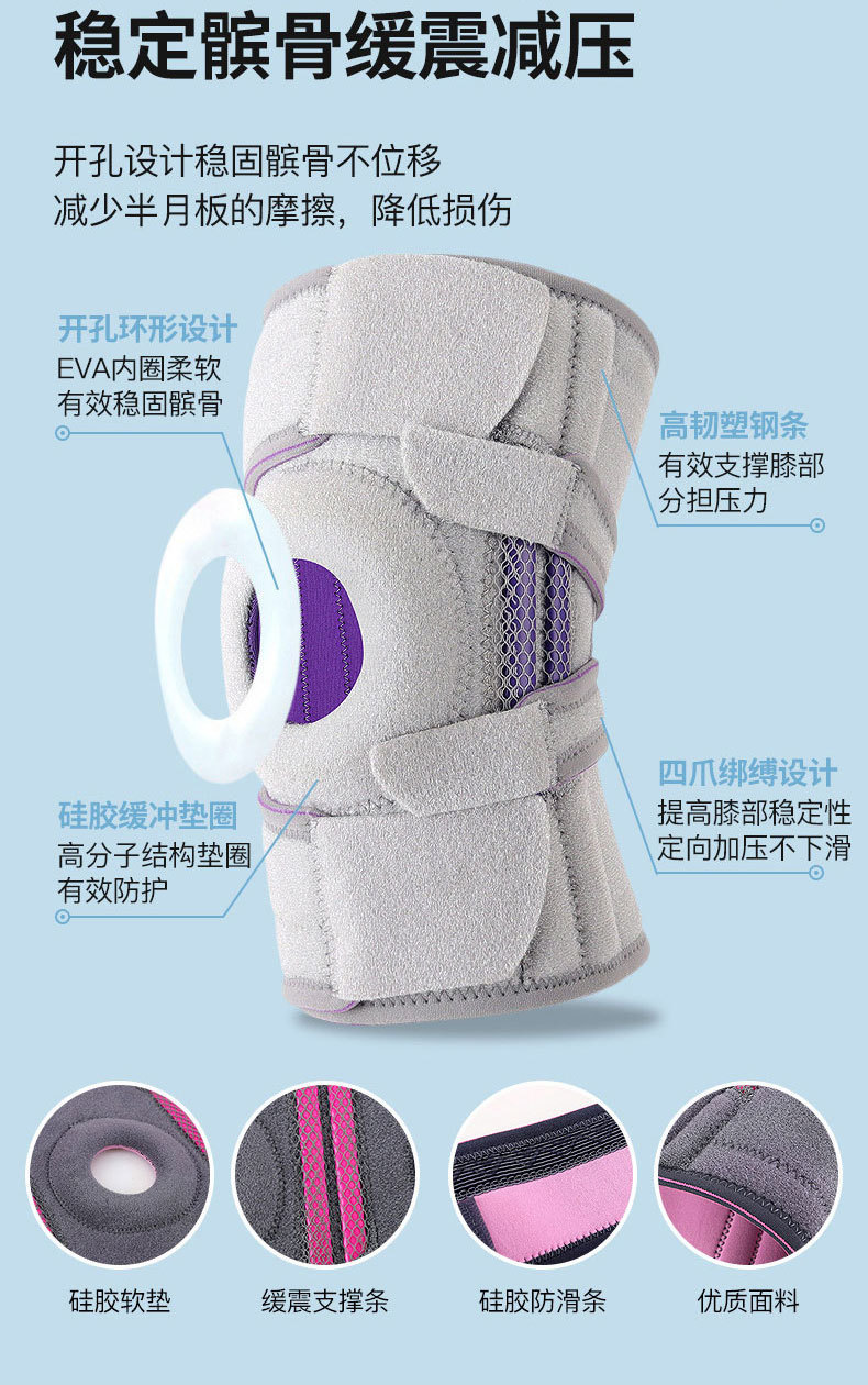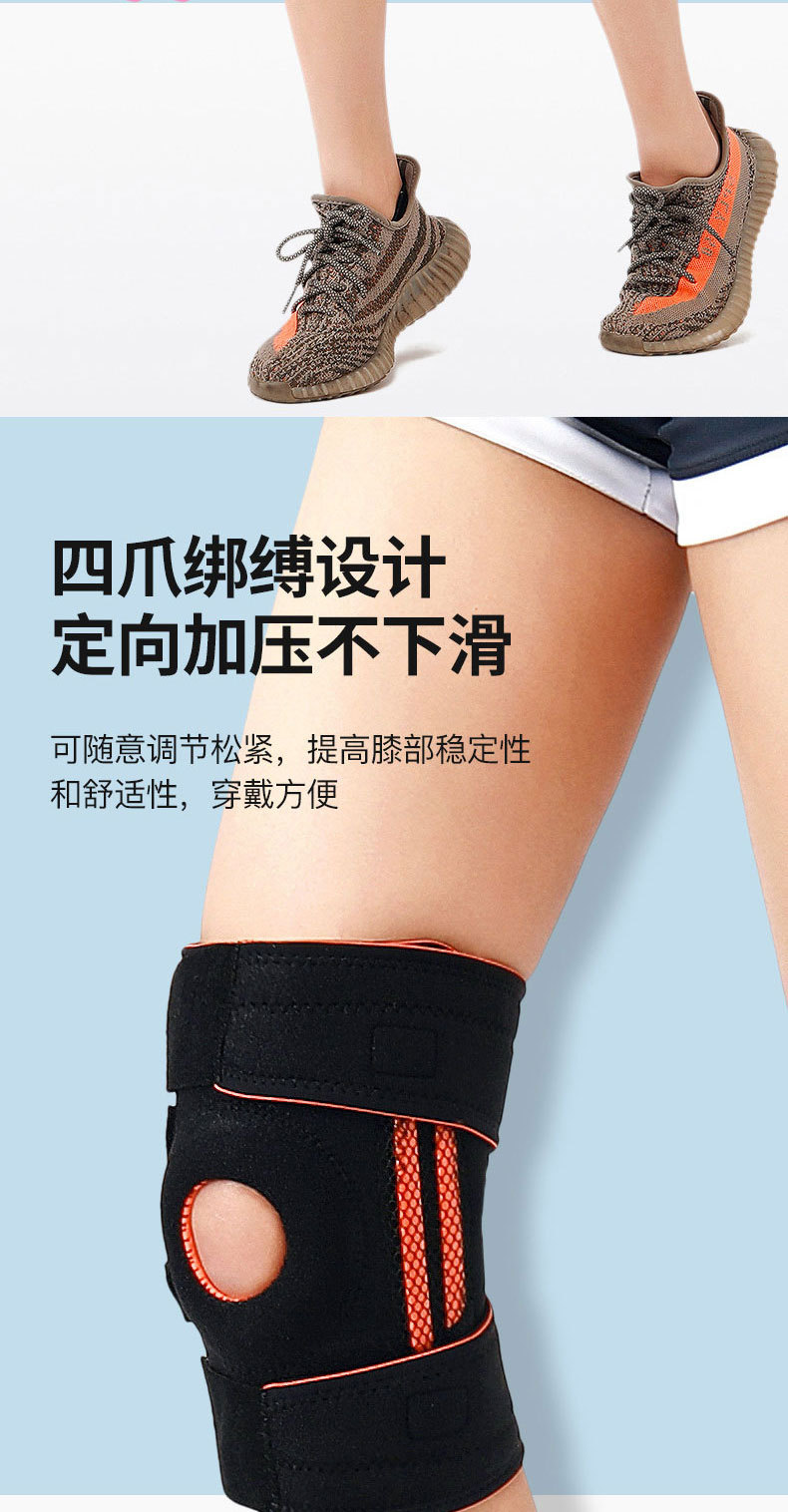 남녀공용 야외 스포츠 스트랩형 압축 무릎 보호대, 충돌 방지 및 충격 흡수, 개방형 조절 가능 무릎 보호대, 가볍고 통기성 좋은 반월판 보호대
