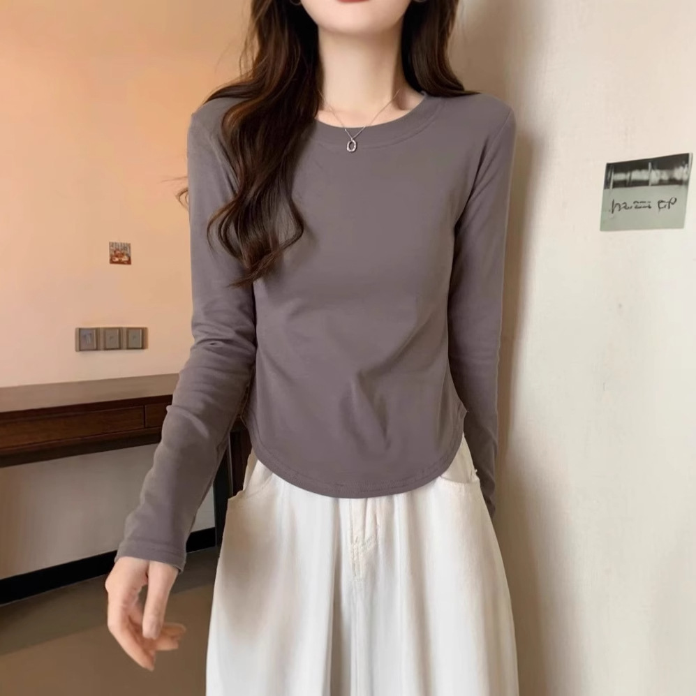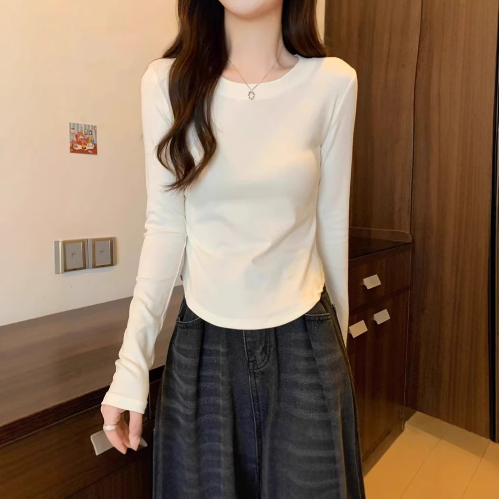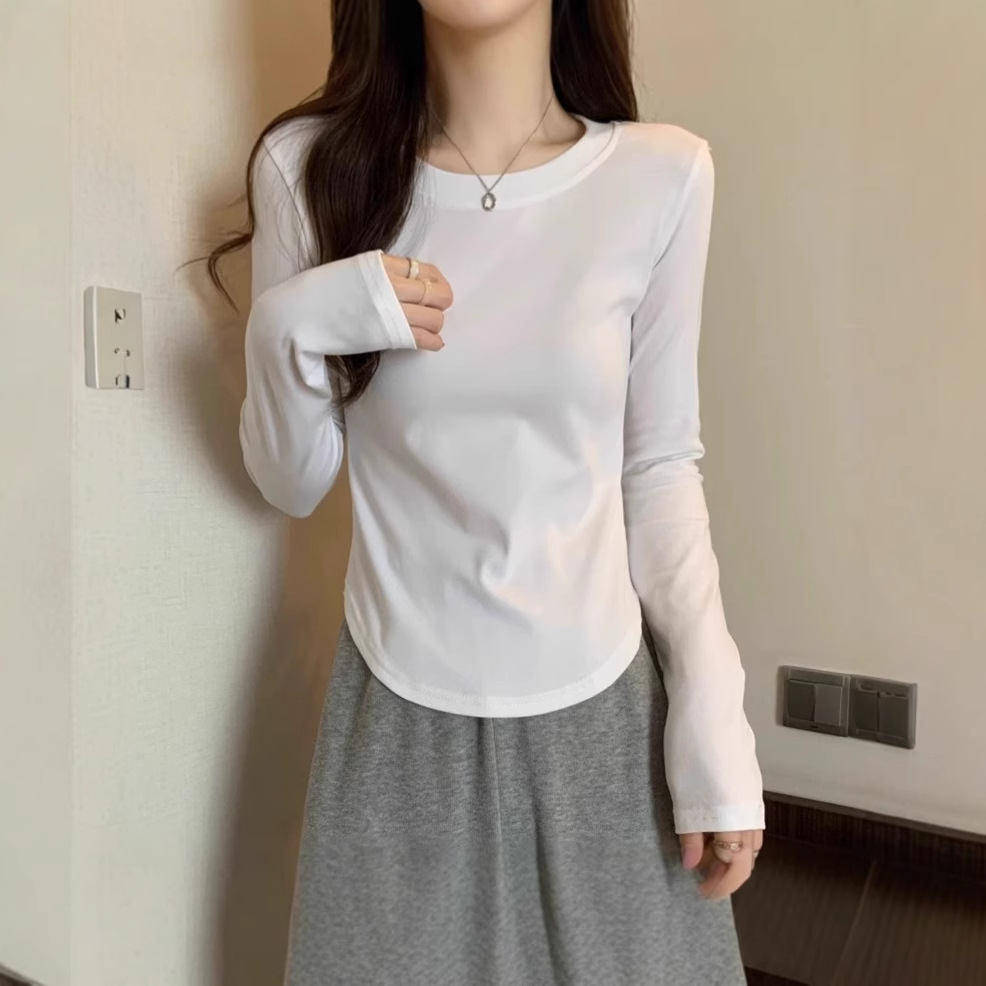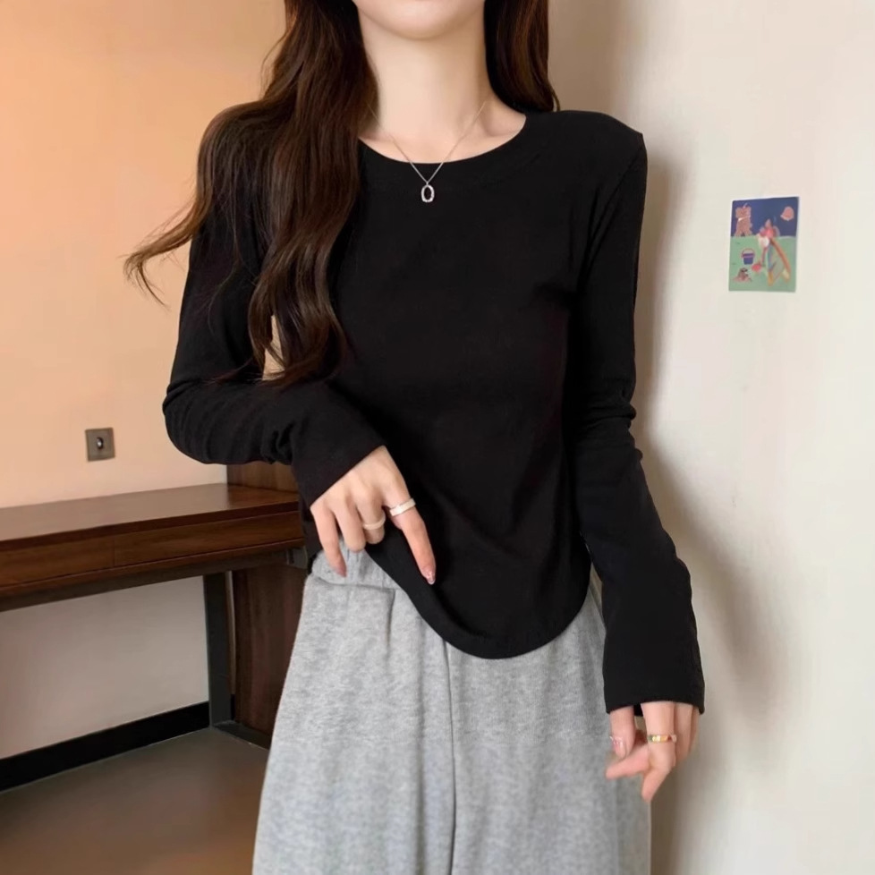 2024 새로운 올 매치 터틀넥 라운드 넥베이스 셔츠 긴팔 티셔츠 여성용 가을 불규칙한 곡선 허리 내부 셔츠스토어 가기
