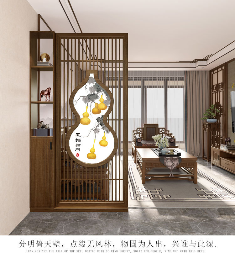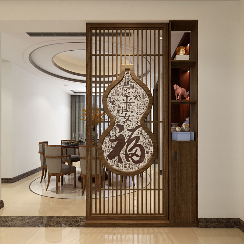 새로운 중국식 푸 캐릭터 스크린 캐비닛 파티션 거실 단단한 나무 입구 캐비닛 호이스트 그릴 홈 음영 보관 랙