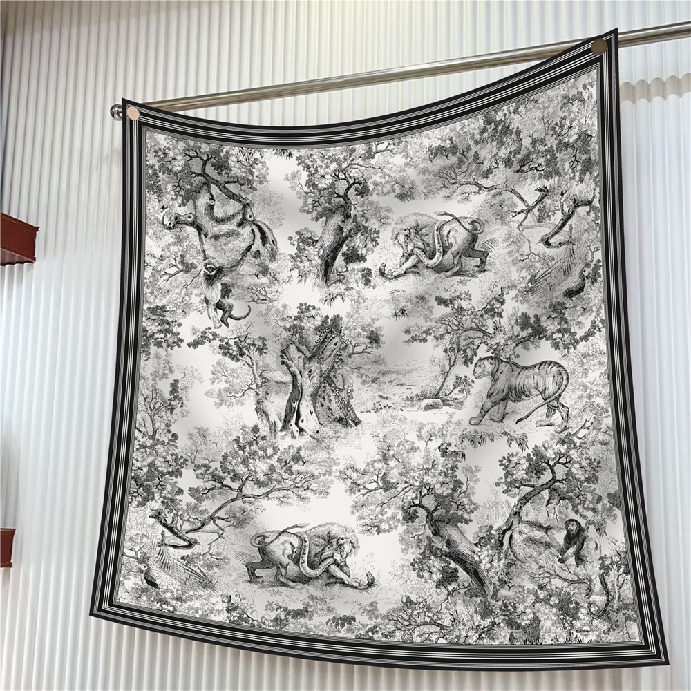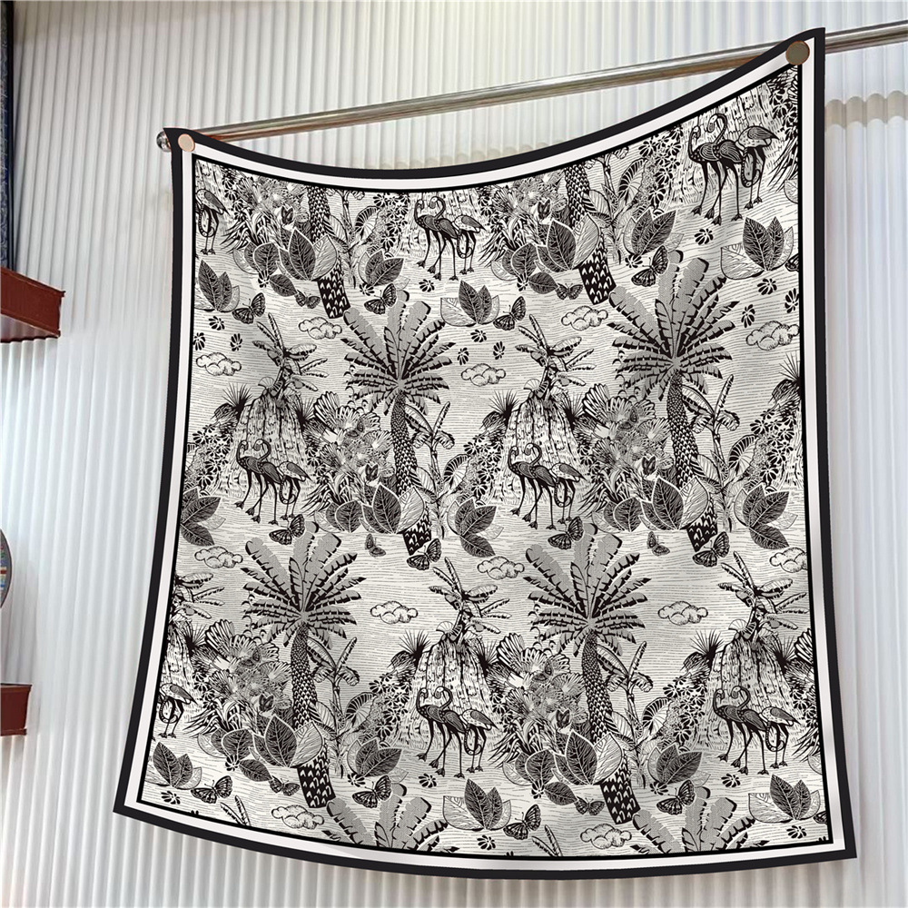 새로운 90cm 실크 스카프 꽃과 새 동물 프린트 여성용 대형 스퀘어 스카프 여행 조커 숄 선 스크린 스카프 도매