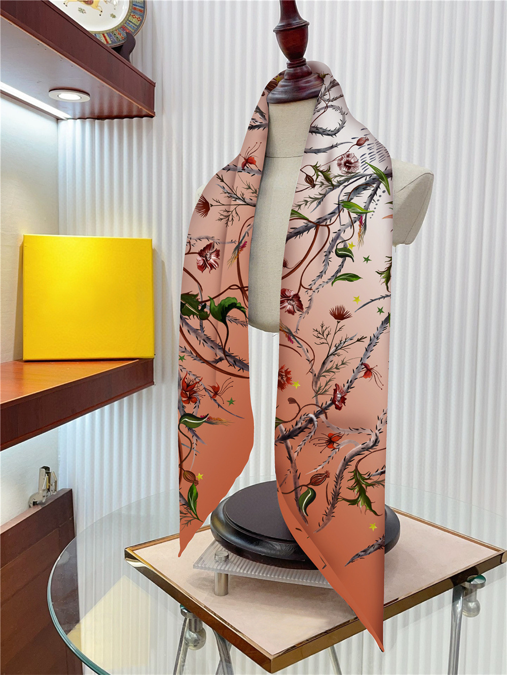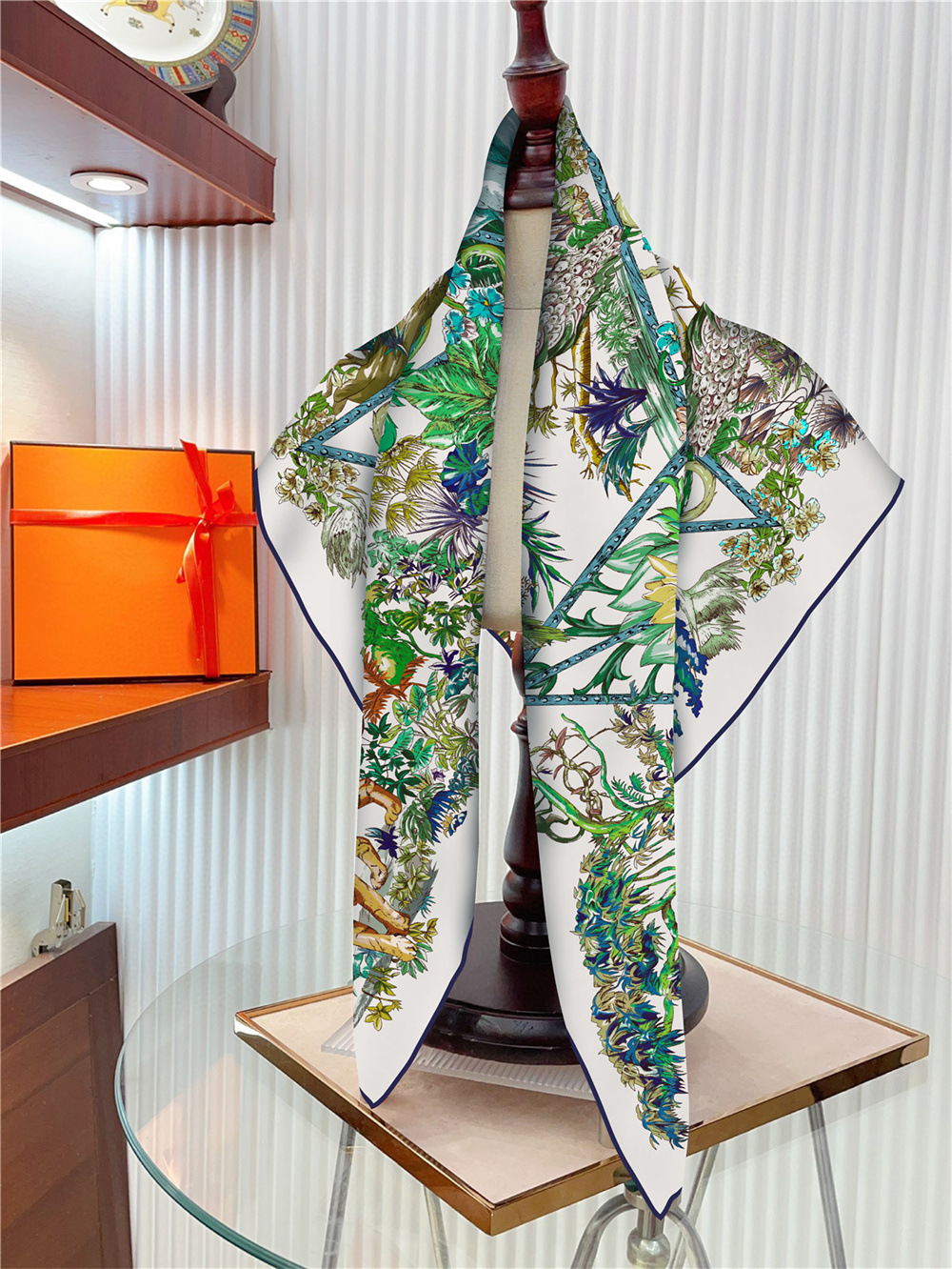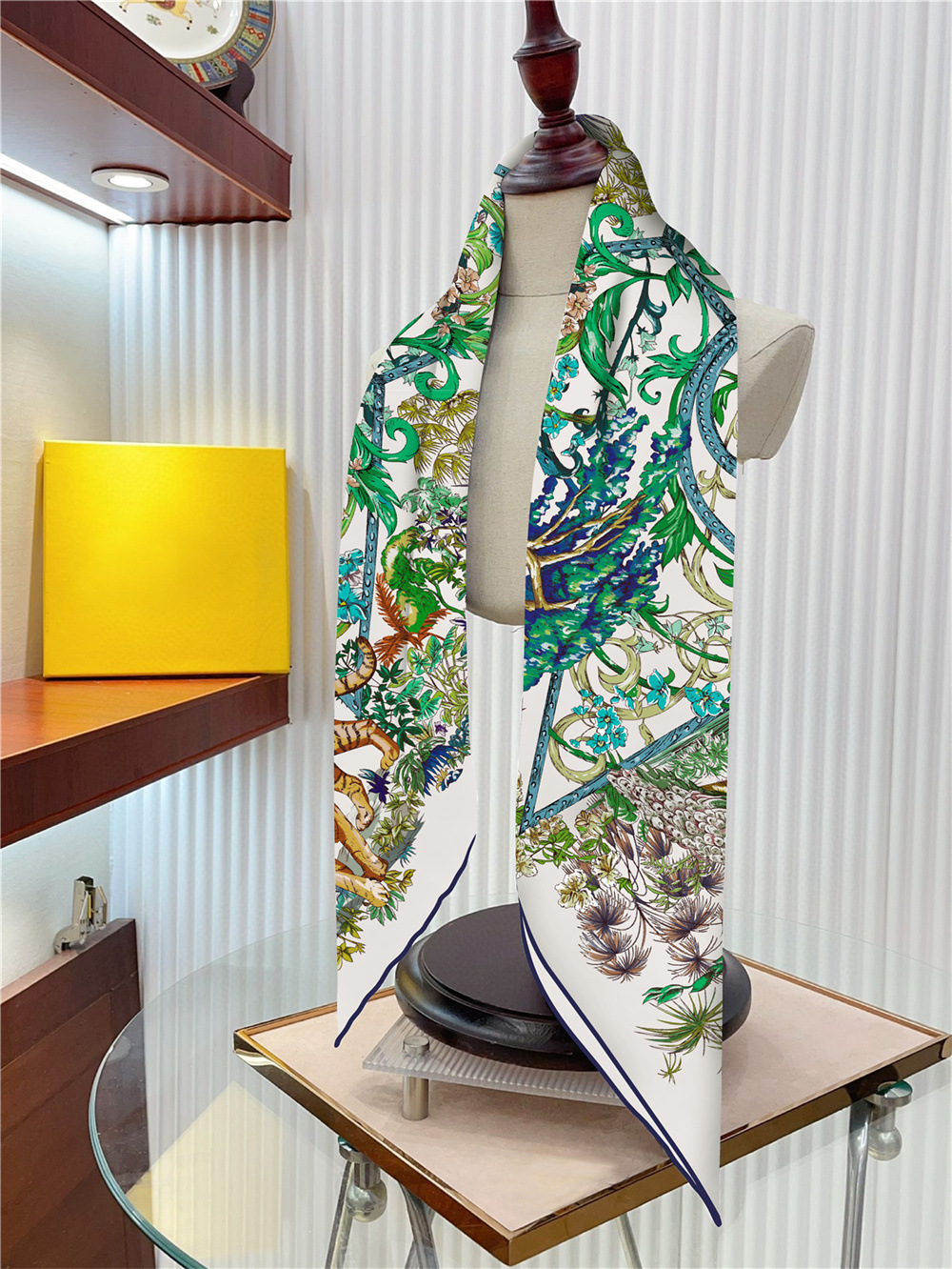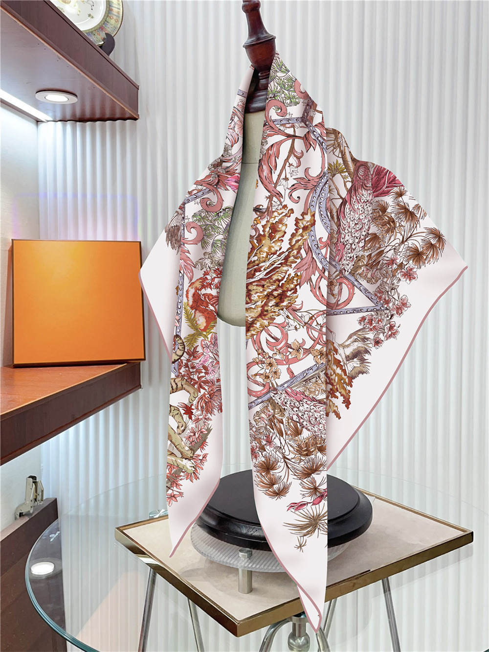 새로운 90cm 실크 스카프 꽃과 새 동물 프린트 여성용 대형 스퀘어 스카프 여행 조커 숄 선 스크린 스카프 도매스토어 가기