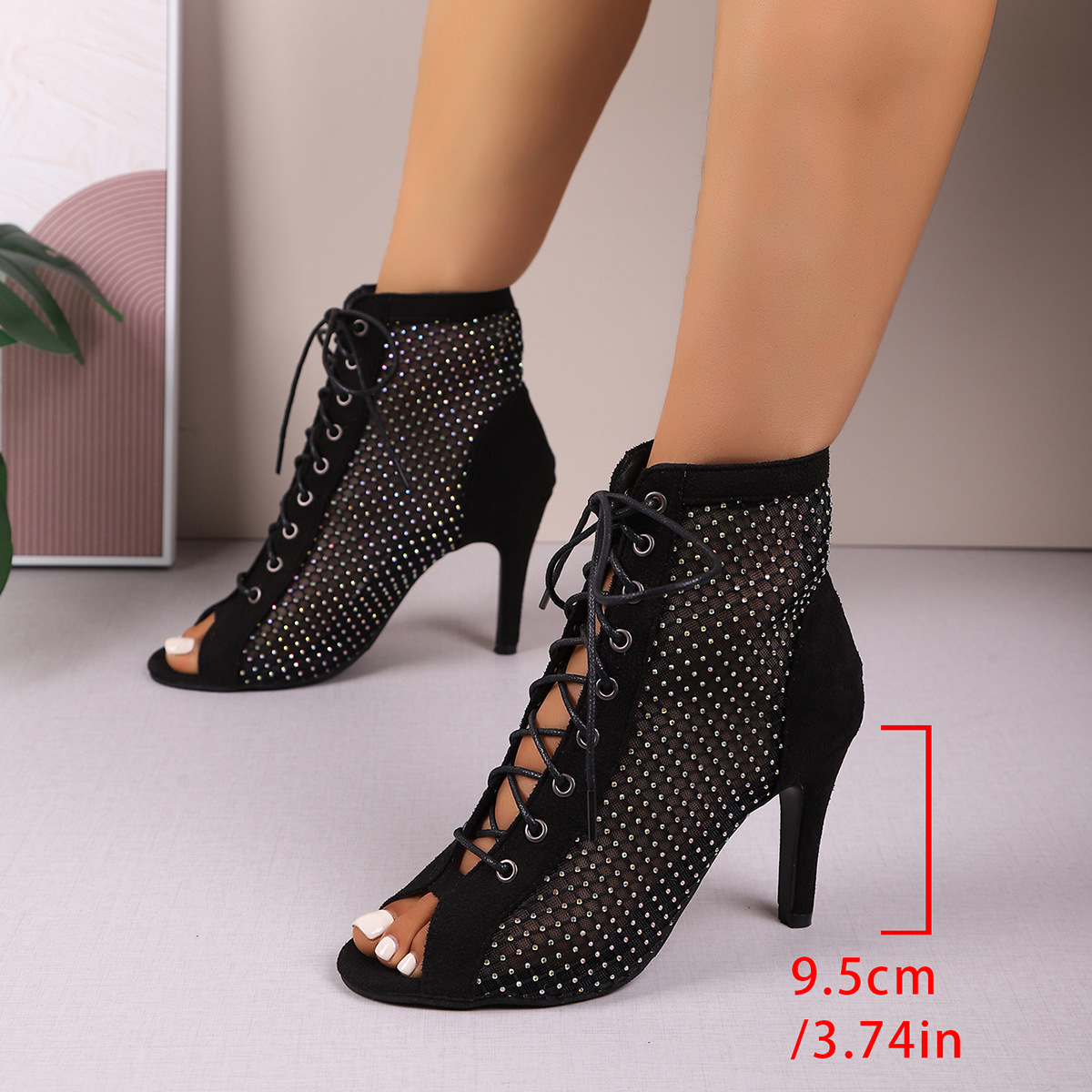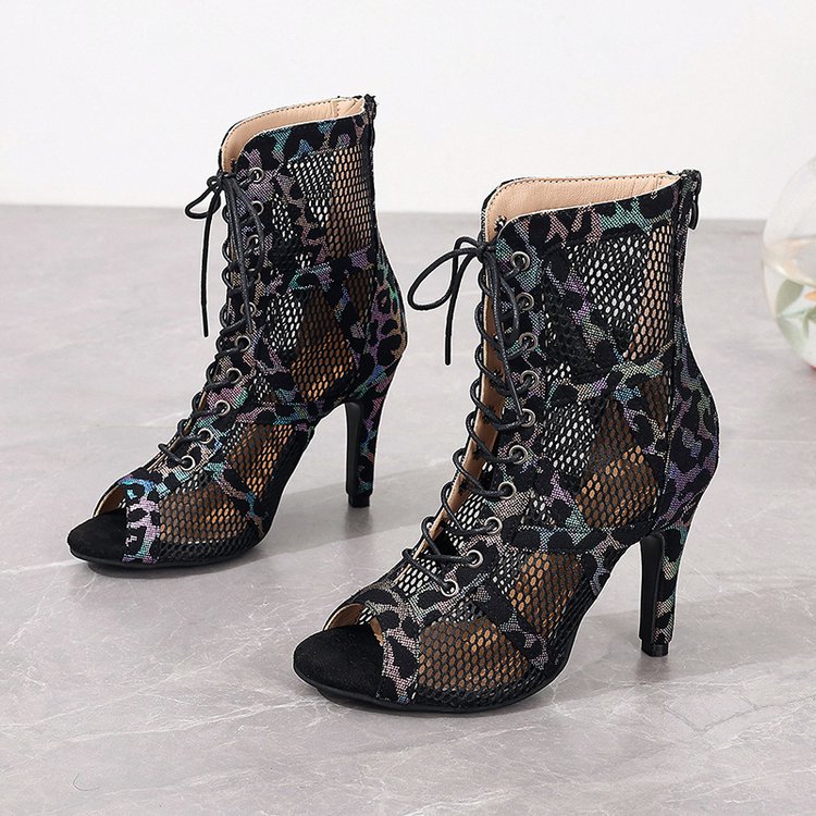국경을 넘는 유럽과 미국의 2024 새로운 메쉬 패션 크로스 스트랩 여성을위한 섹시한 하이힐 플러스 사이즈 쿨 부츠스토어 가기