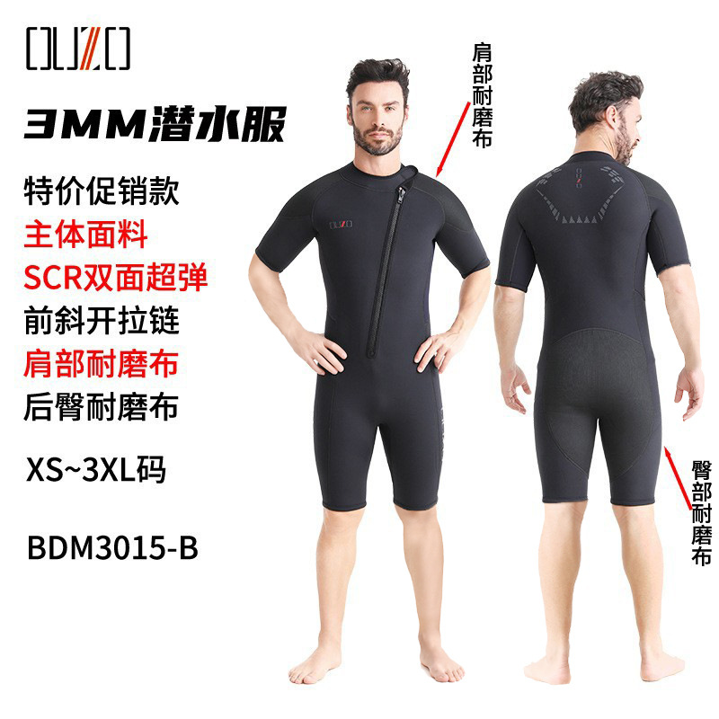 3mm潜水服OUZO男短袖短裤潜水衣加厚防寒保暖冲浪自由潜连体湿衣