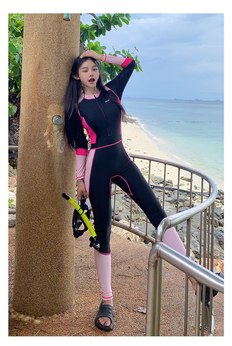 女士连体潜水服防晒长袖泳衣一体式运动冲浪保守2024新款度假泳装