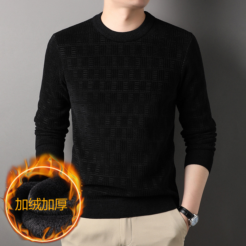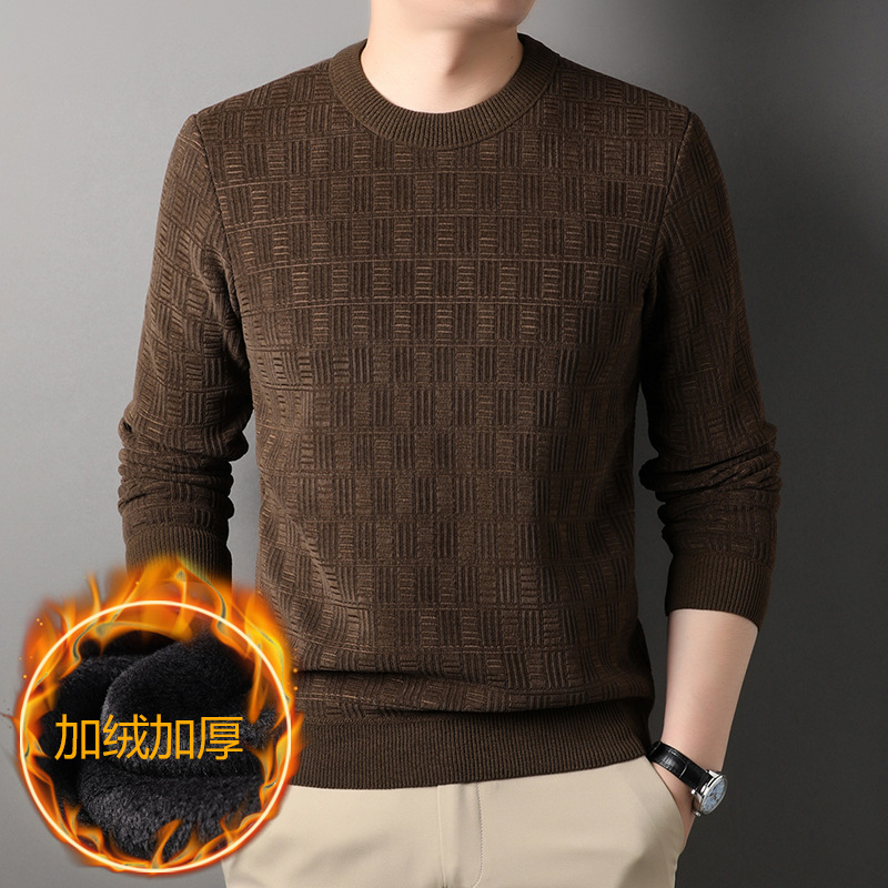 국경 간 대외 무역 Chenille Mahjong 긴팔 스웨터 남자 겨울 기모 두꺼운 둥근 목 캐주얼베이스 셔츠