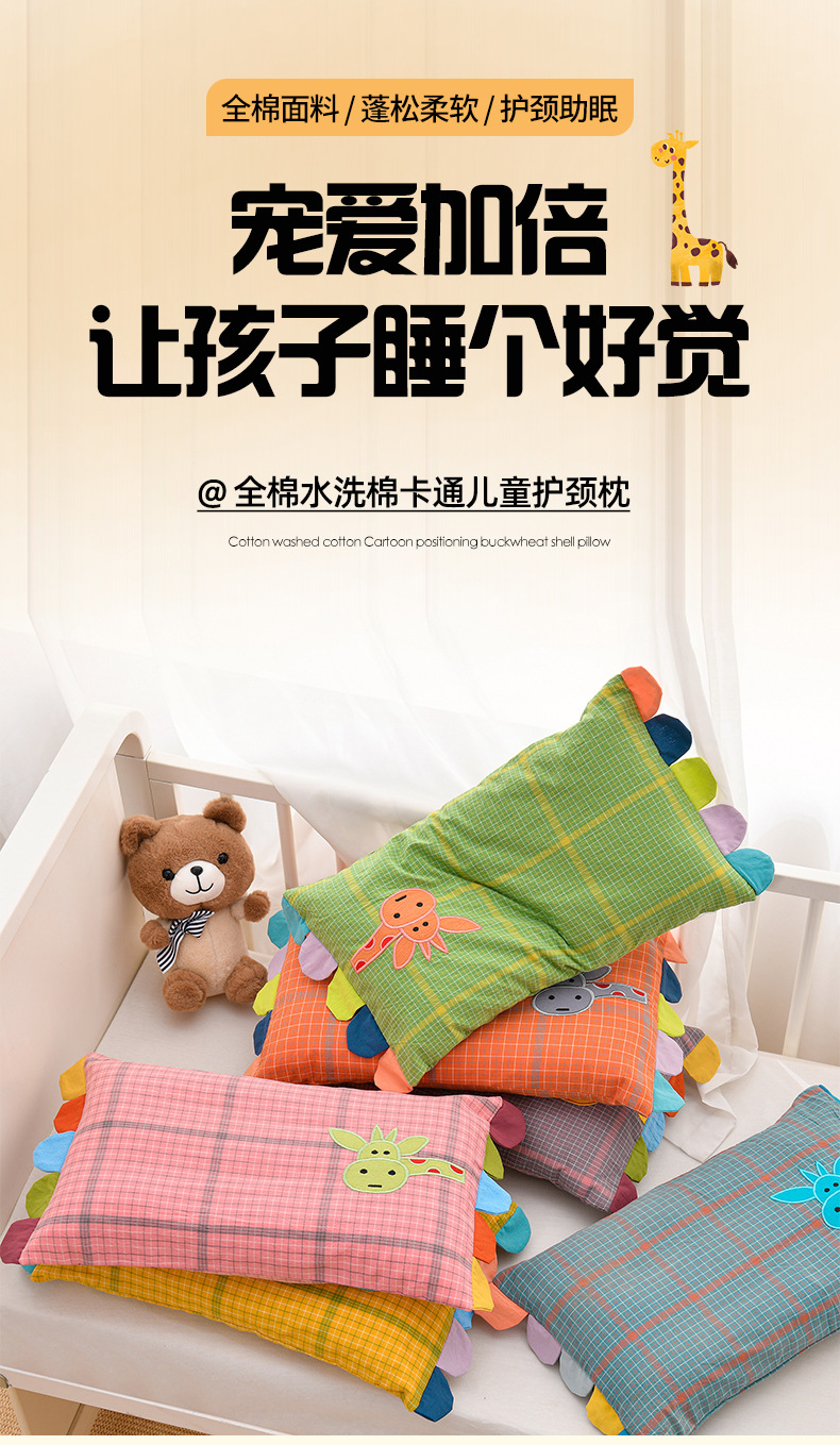 어린이 기린 목화 베개 베개 핵심 유치원 땀 흡수 통기성 낮잠 베개 씻은 면 귀여운 베개