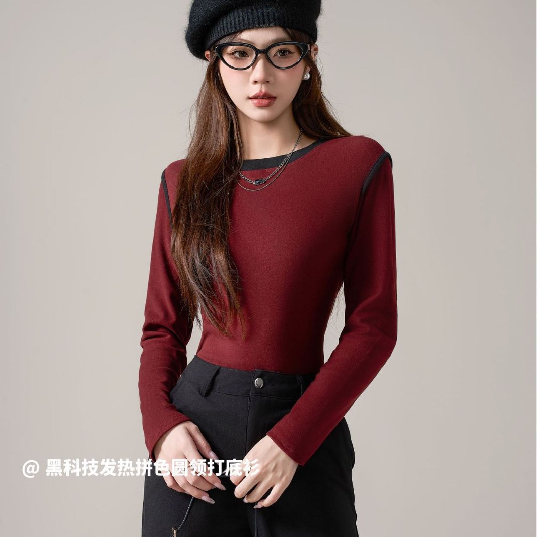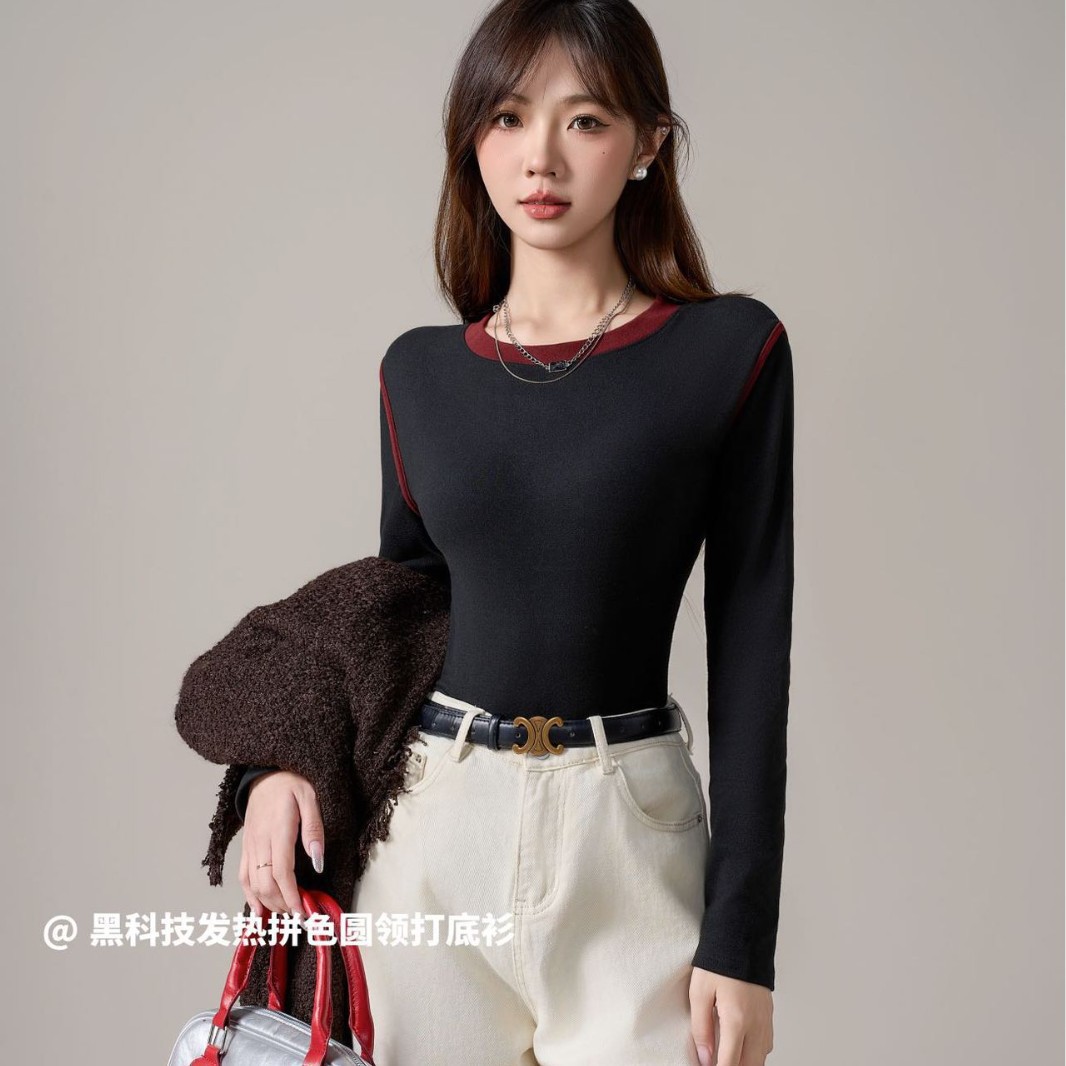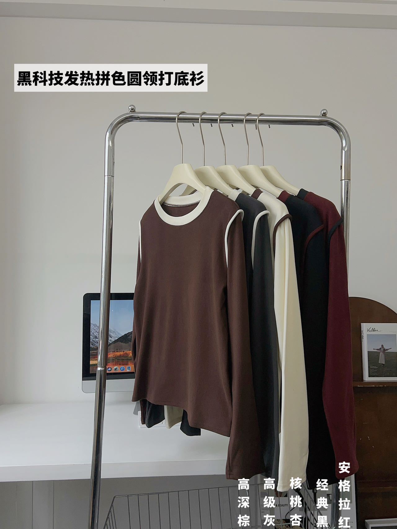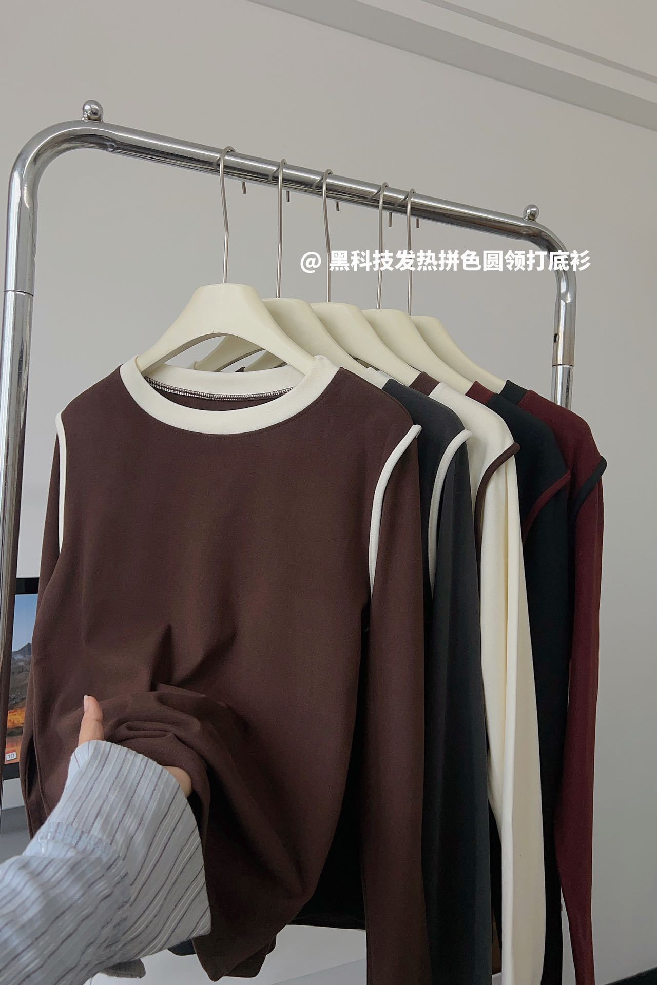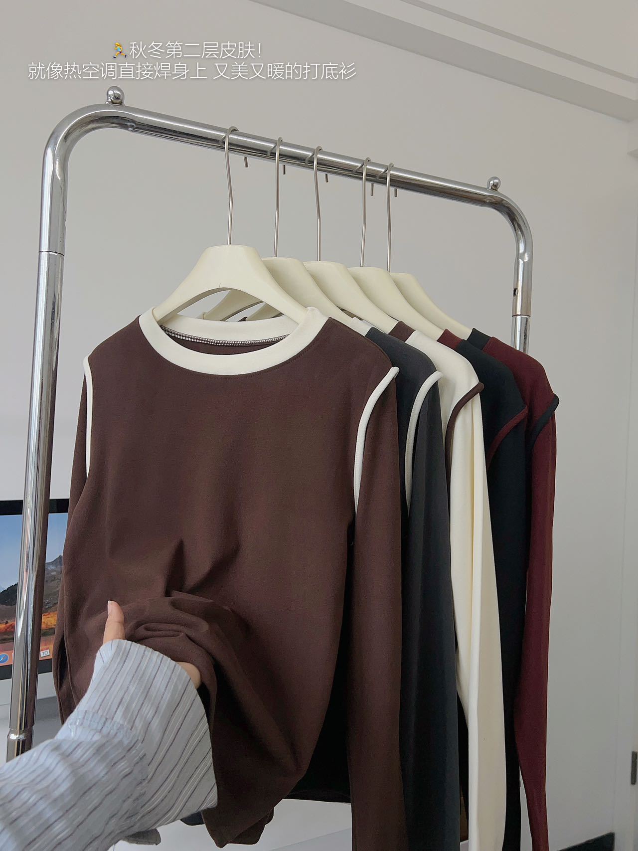 미국 복고풍 색상 일치하는 어깨 긴팔 티셔츠 여성의 봄과 가을 샌딩 디자인 센스 니치베이스 셔츠 내부 탑스토어 가기